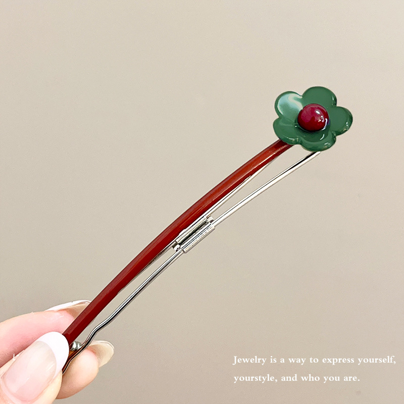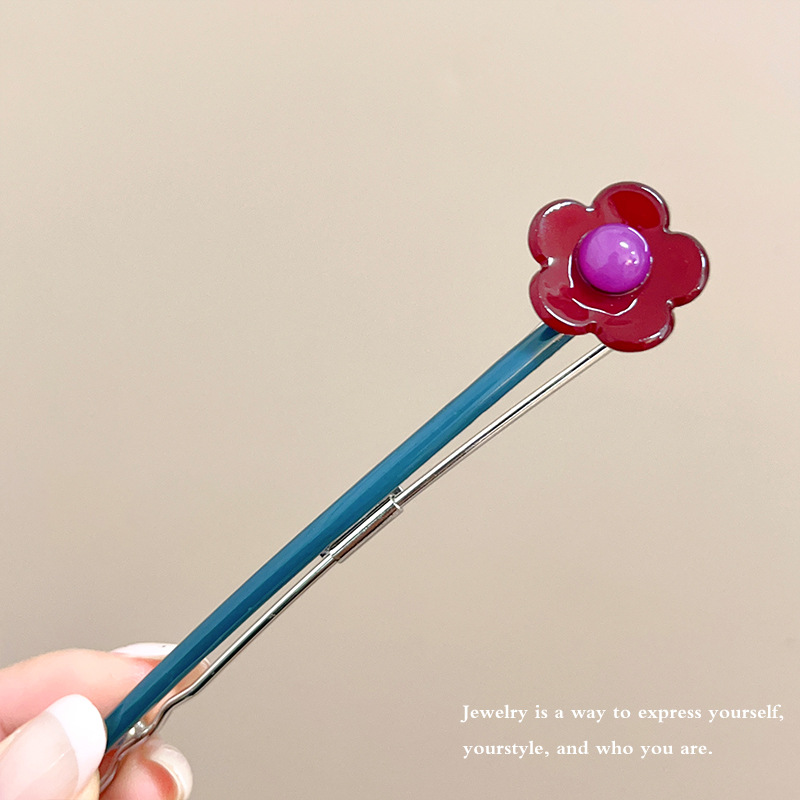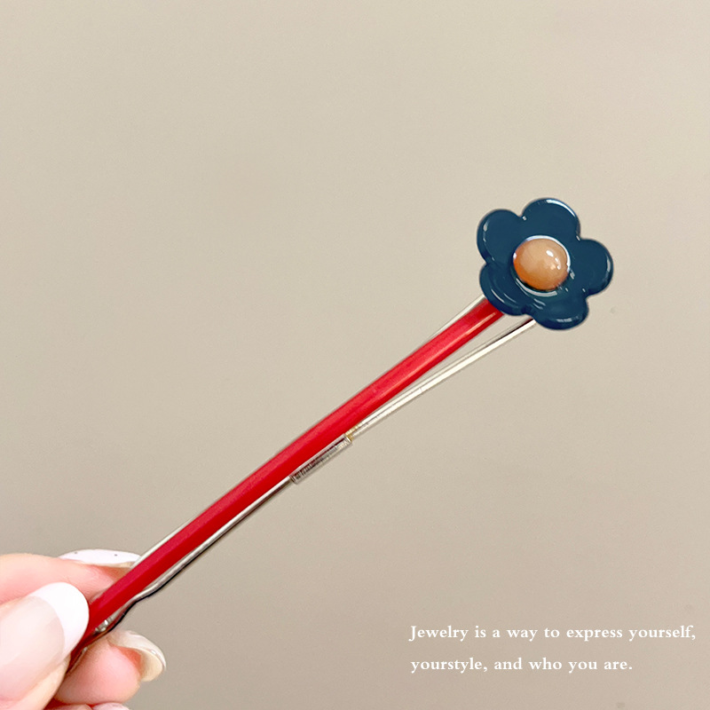 한국식 콘트라스트 컬러 진주 꽃 개구리 버클 한 단어 헤어핀 여성의 하이 엔드 느낌 머리 우아한 헤어 클립 헤드웨어스토어 가기
