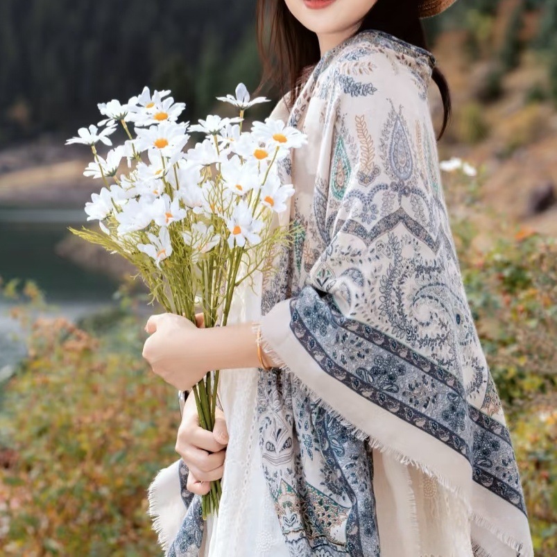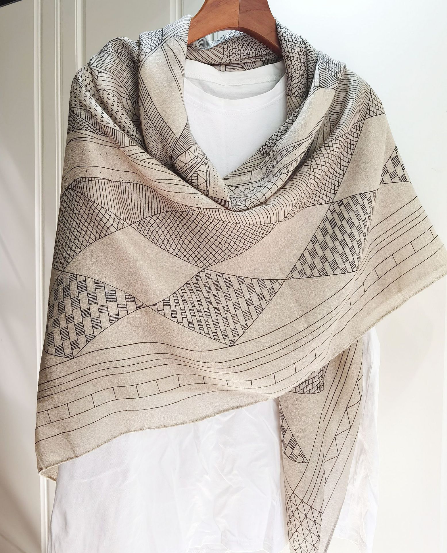 스케치 기하학적 130 대형 광장 스카프 여성의 2025 년 봄과 여름 새로운 스카프 에어컨 방 목도리 여행 선 스크린 얇은 실크 스카프스토어 가기
