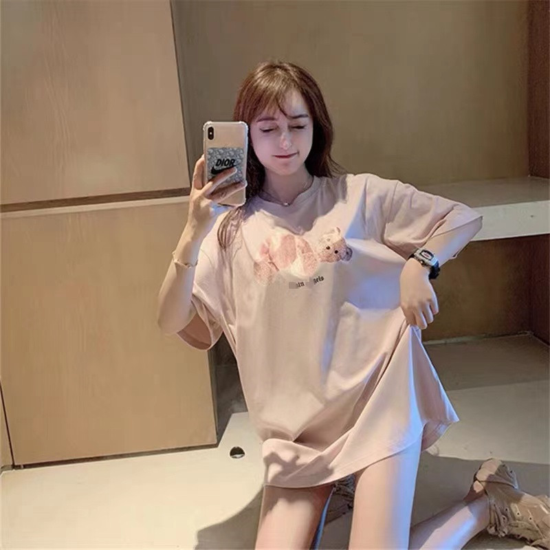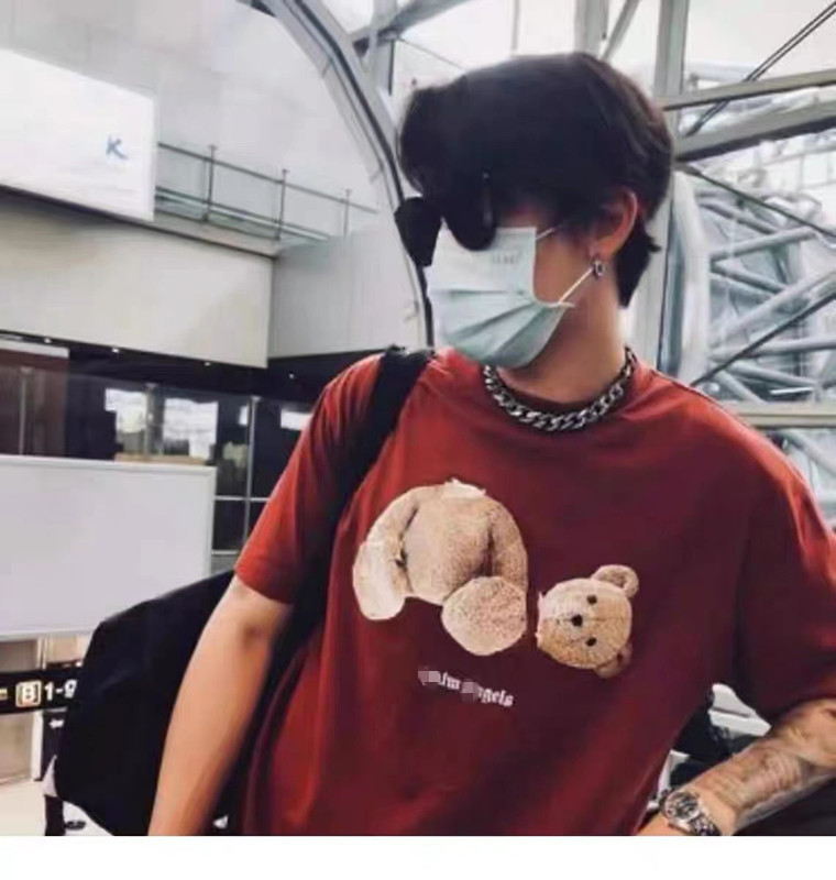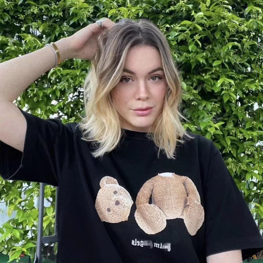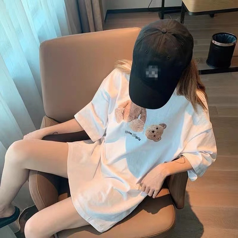 트렌디 한 브랜드 PLAm 천사 깨진 곰 인쇄 티셔츠 느슨한 남성과 여성 커플의 짧은 소매
