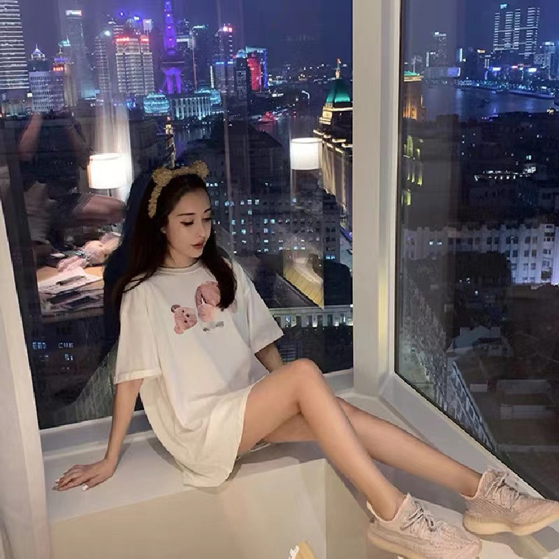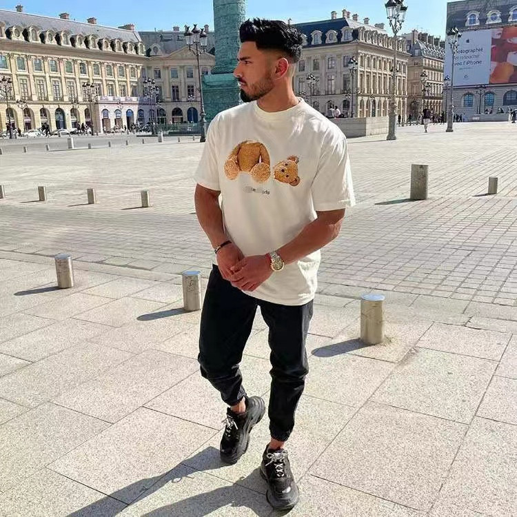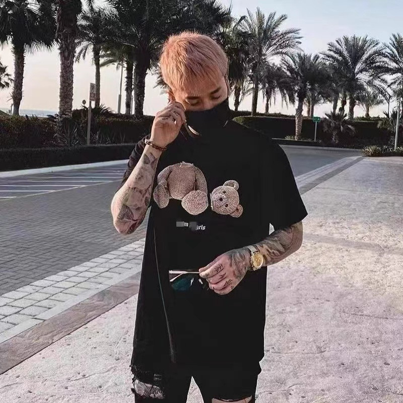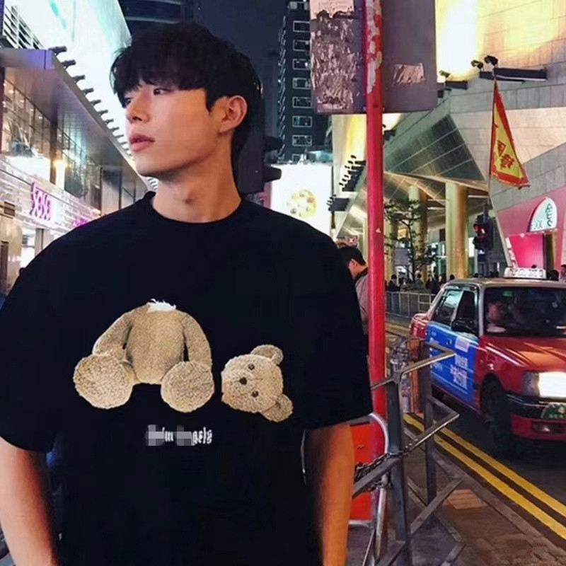 트렌디 한 브랜드 PLAm 천사 깨진 곰 인쇄 티셔츠 느슨한 남성과 여성 커플의 짧은 소매스토어 가기