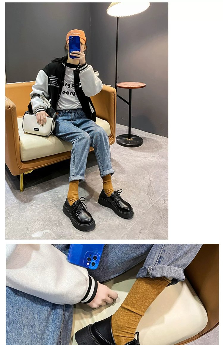 여성용 블랙 빅토우 소가죽 신발 2025 봄 신상 패션 다용도 일본 jk 로퍼 영국 스타일 두꺼운 밑창스토어 가기
