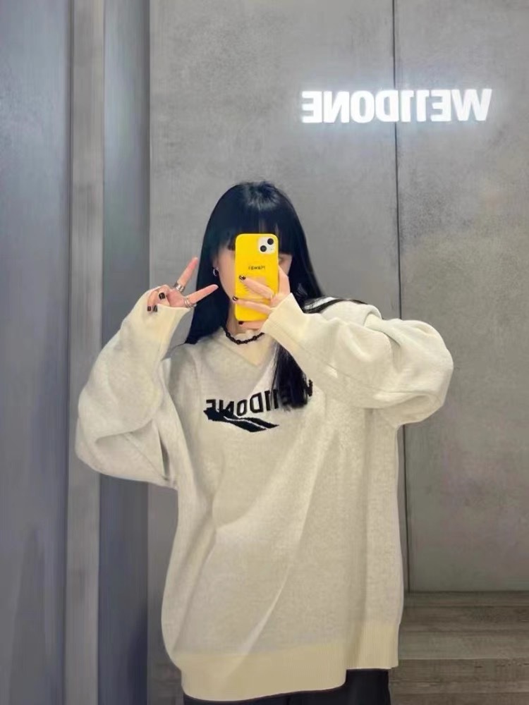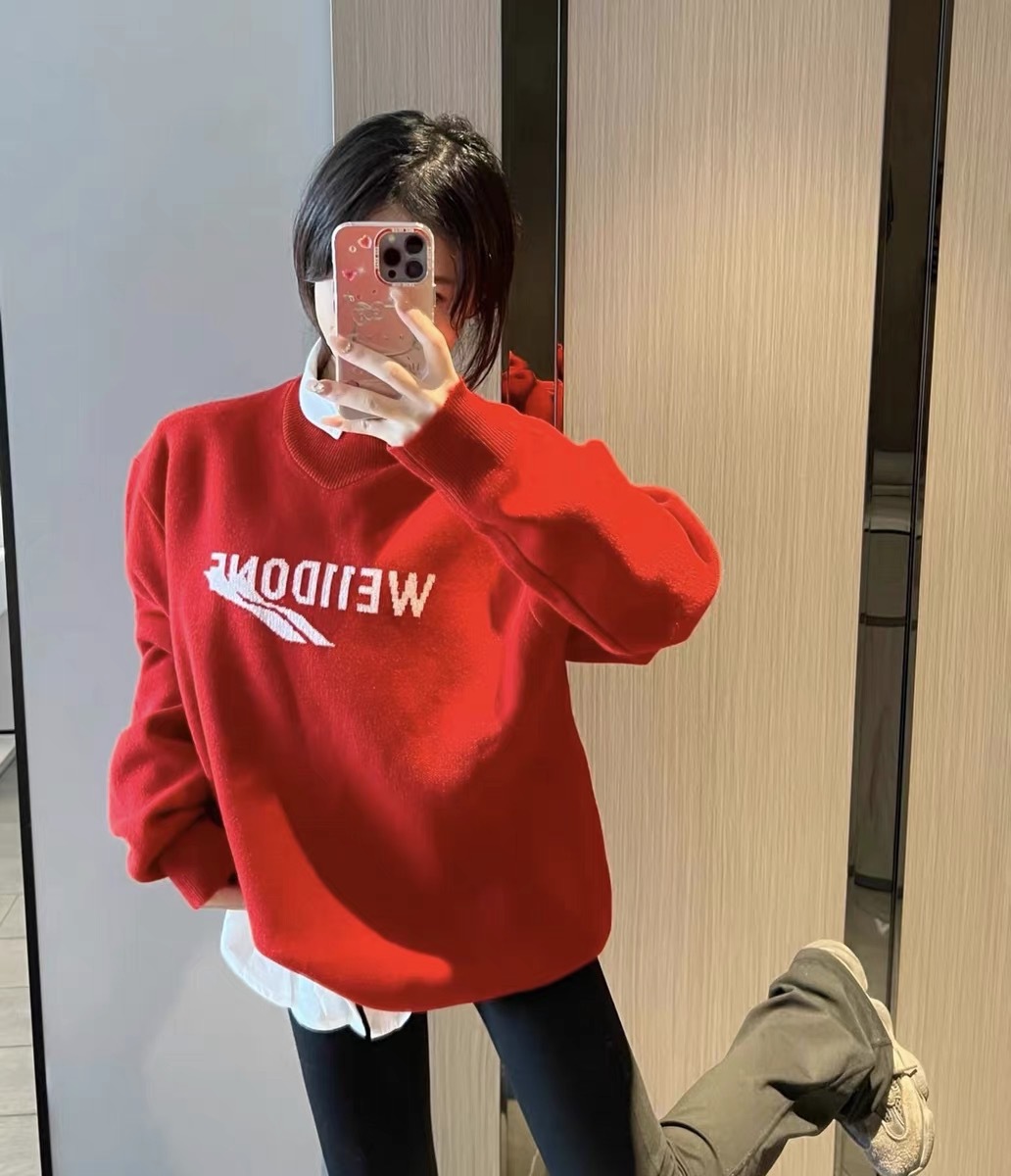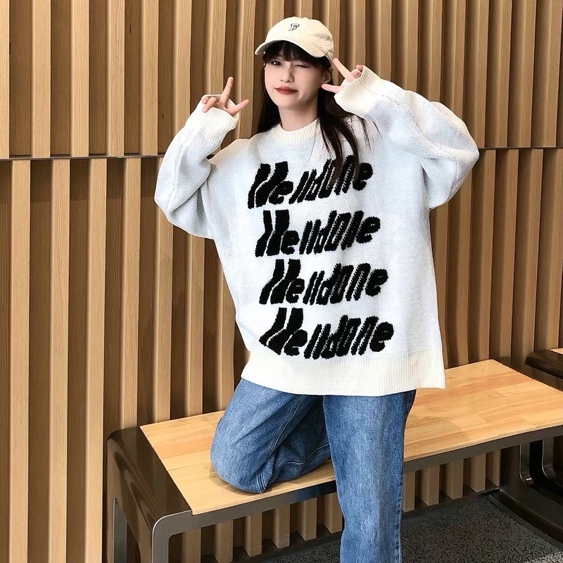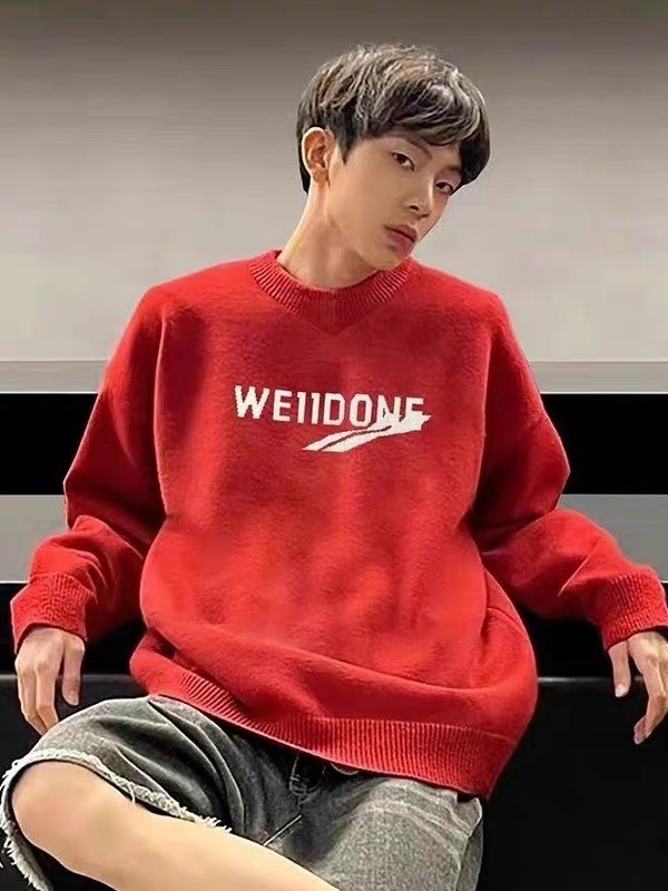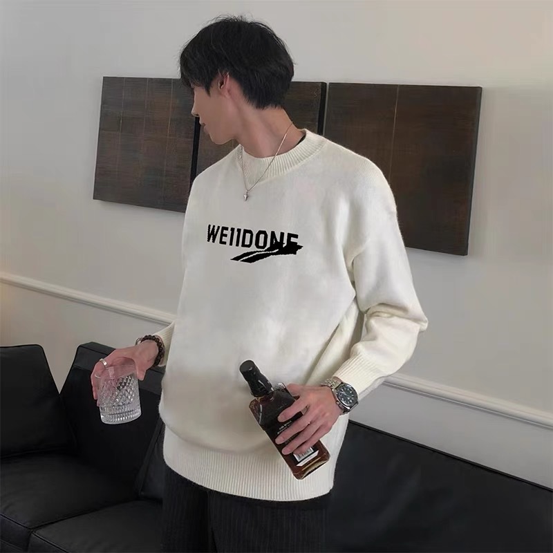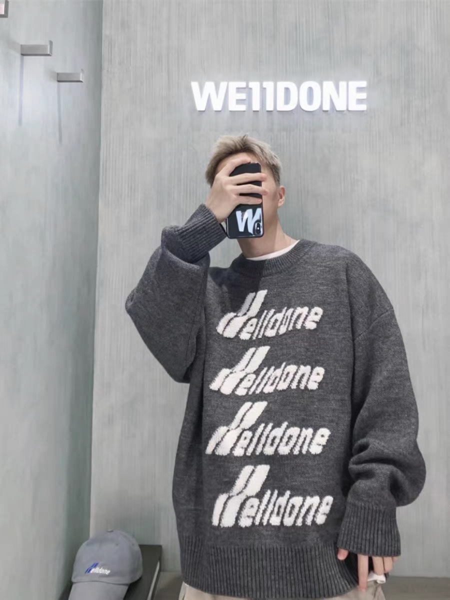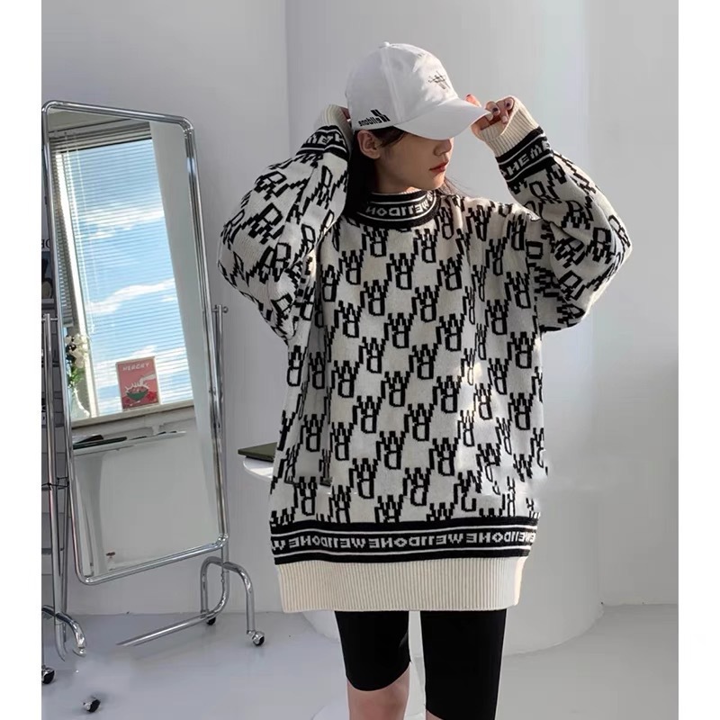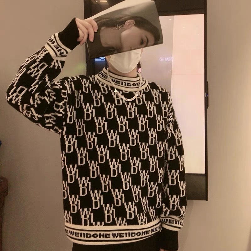 WE11 가을과 겨울 새로운 간단한 편지 자카드 올매치 게으른 스타일 한국 캐주얼 느슨한 크루 넥 스웨터