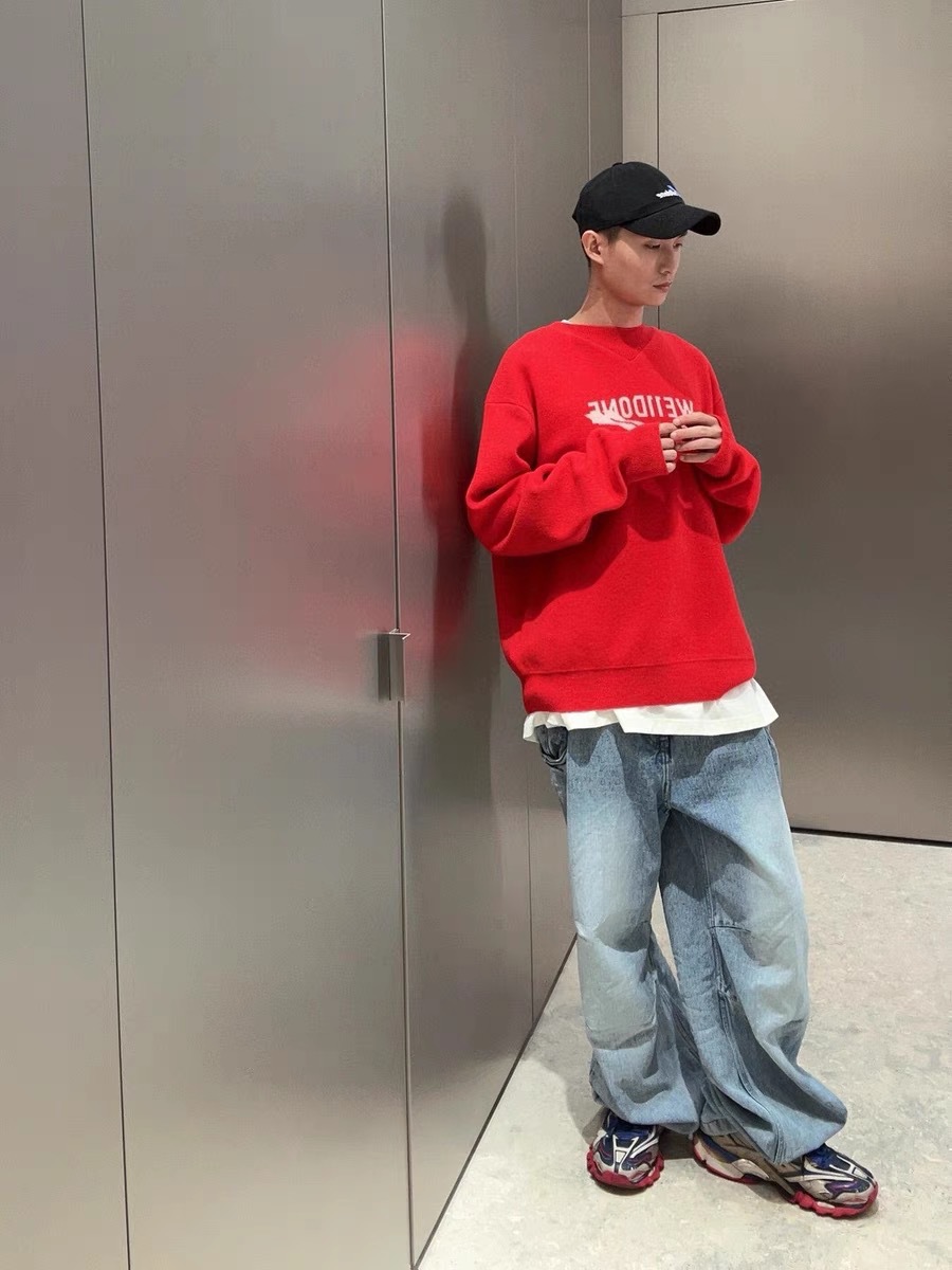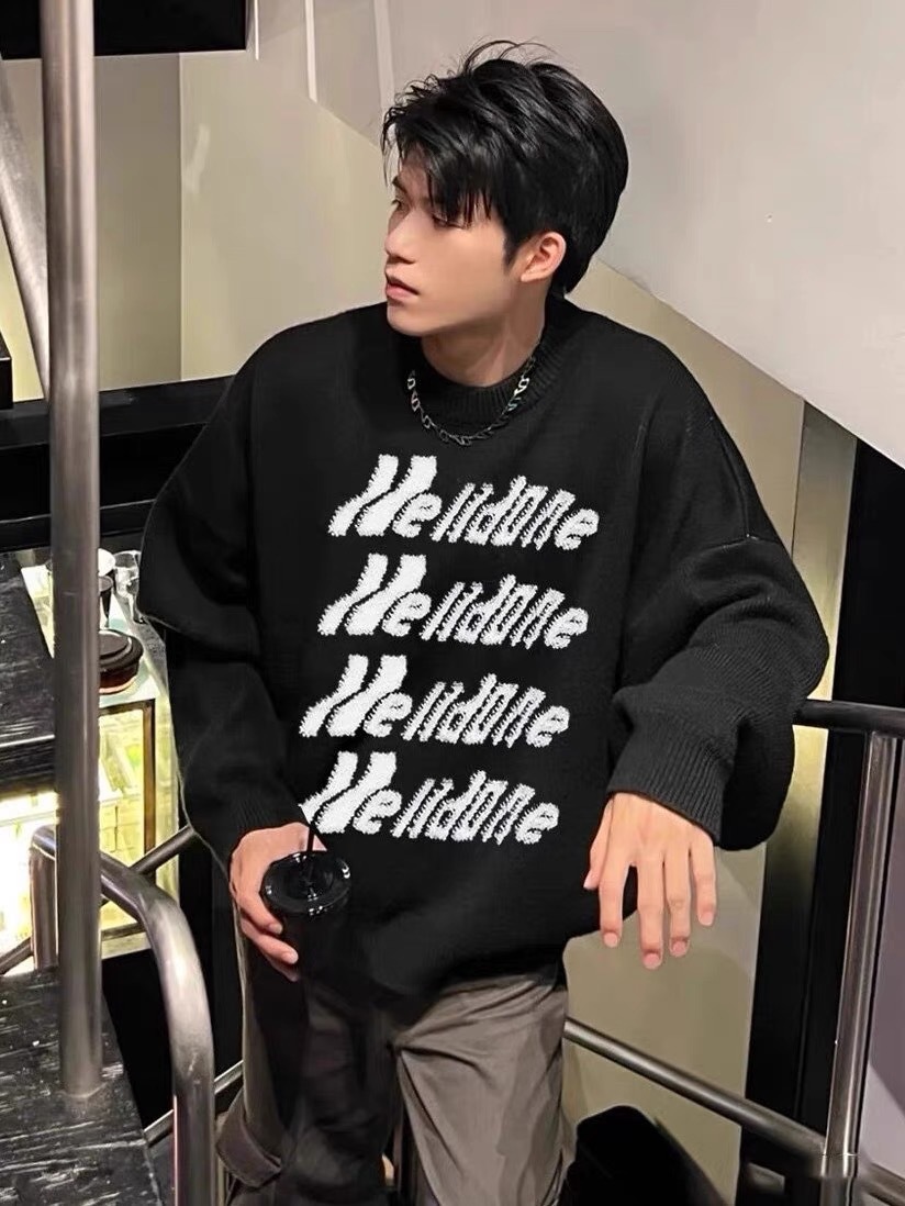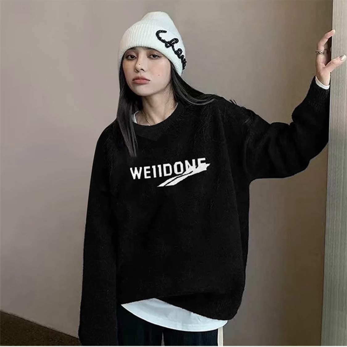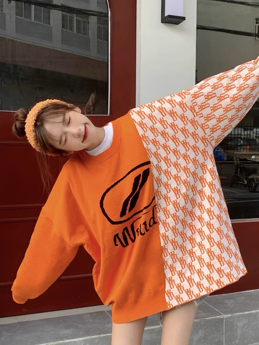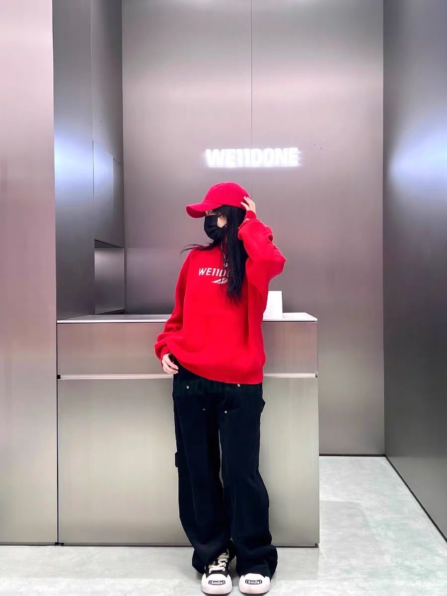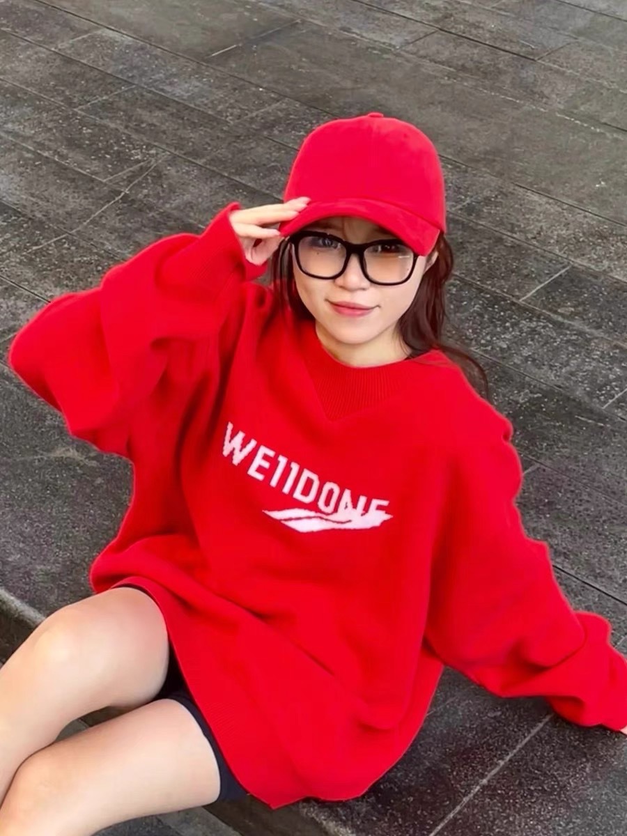 WE11 가을과 겨울 새로운 간단한 편지 자카드 올매치 게으른 스타일 한국 캐주얼 느슨한 크루 넥 스웨터