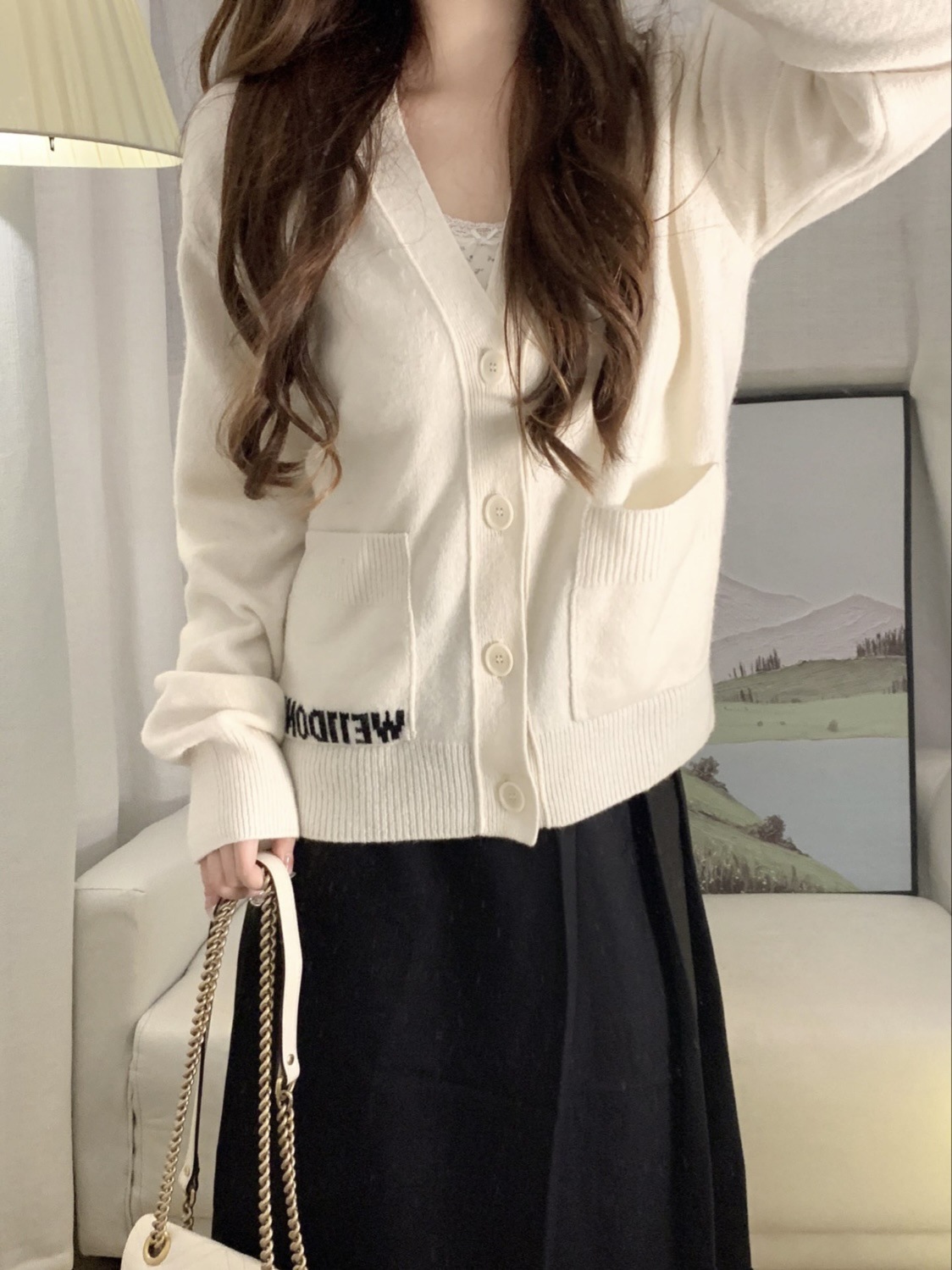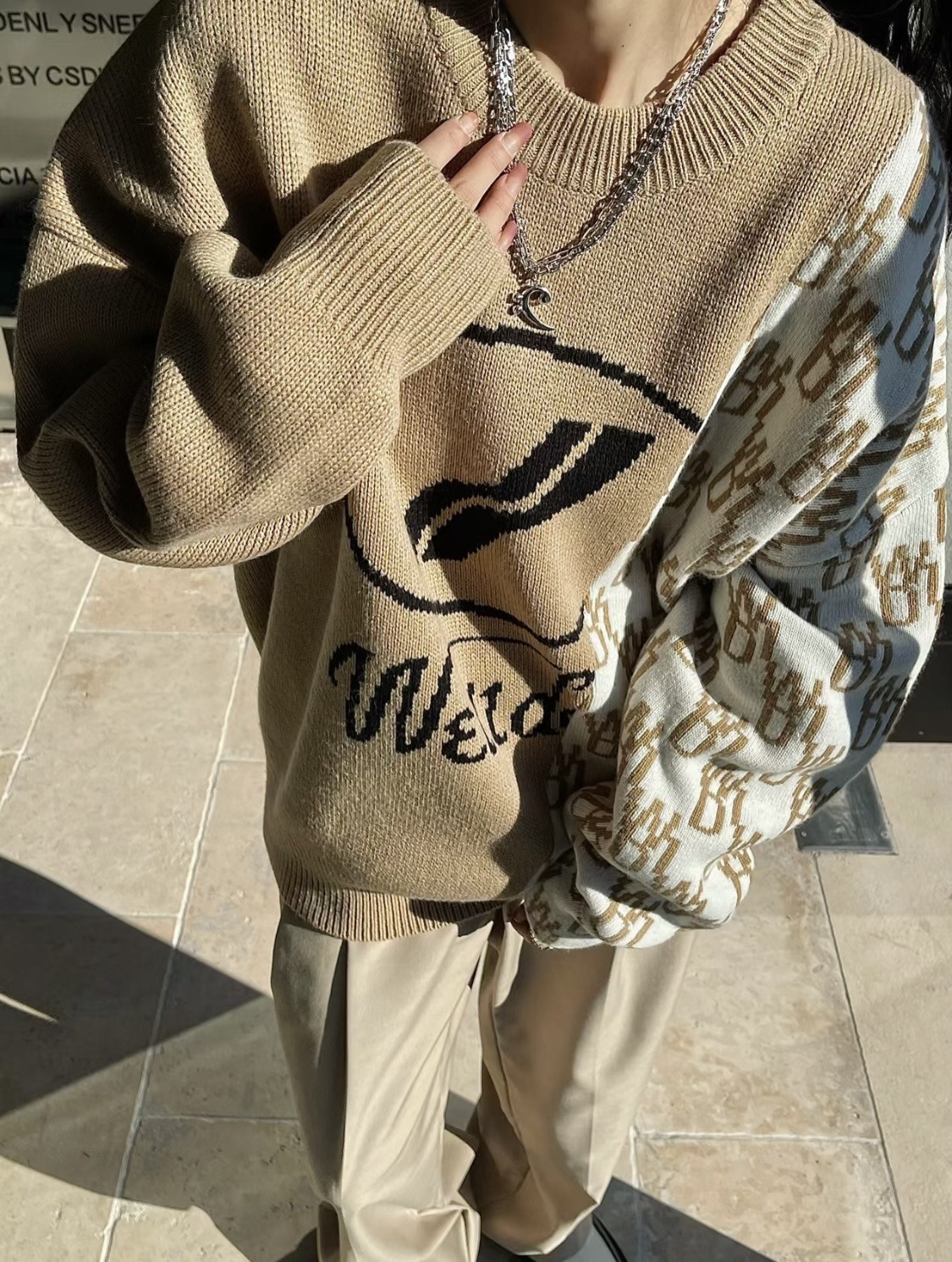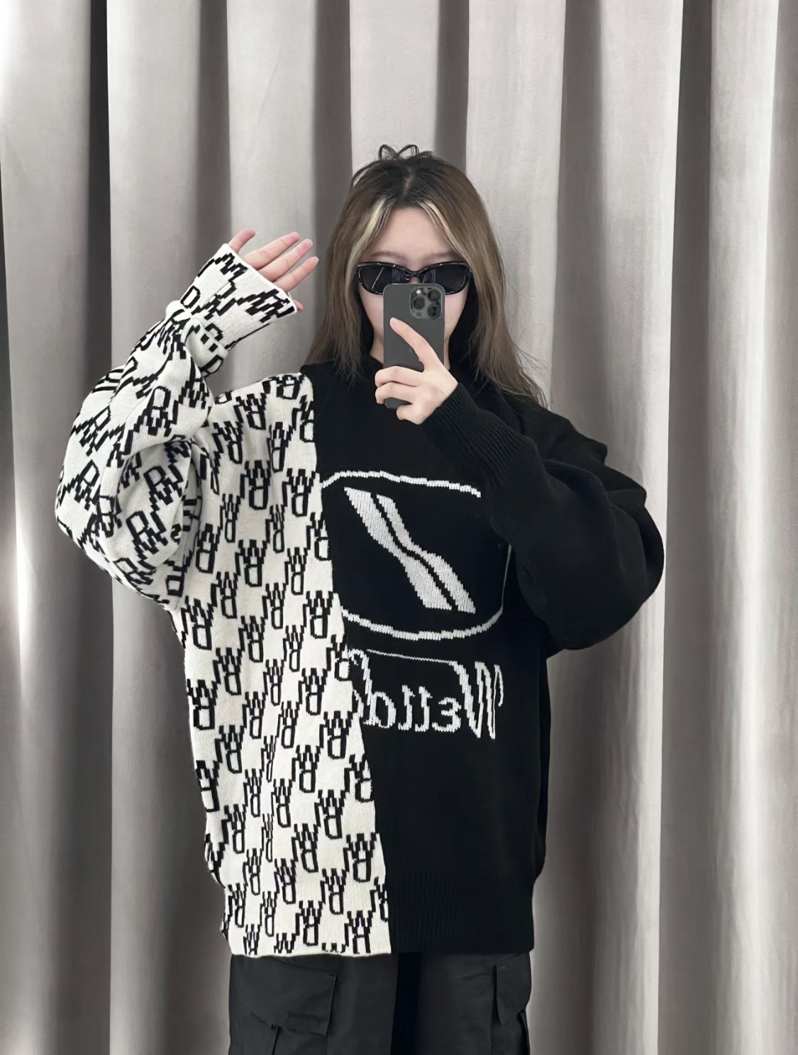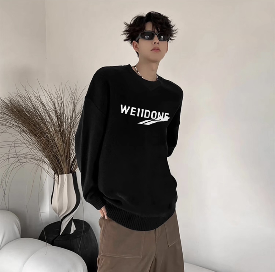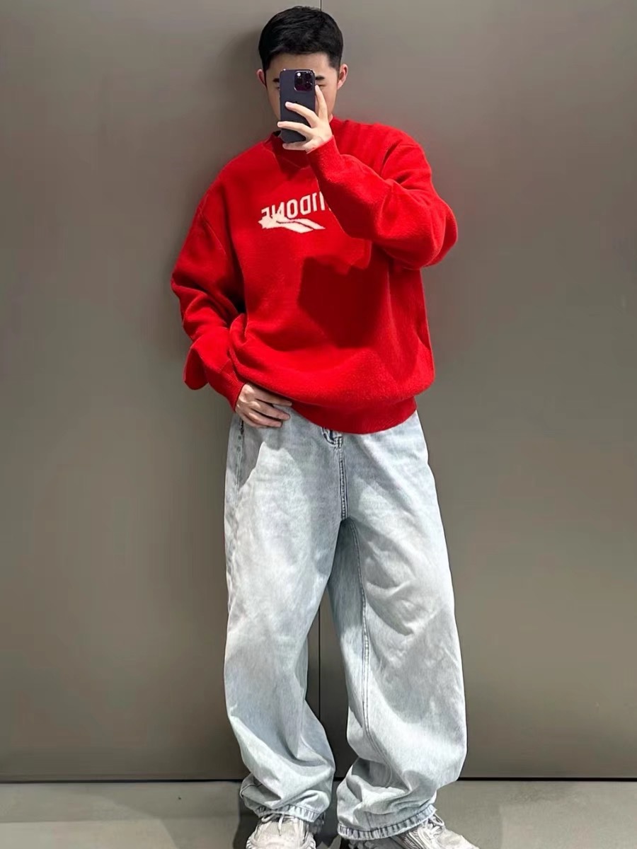 WE11 가을과 겨울 새로운 간단한 편지 자카드 올매치 게으른 스타일 한국 캐주얼 느슨한 크루 넥 스웨터