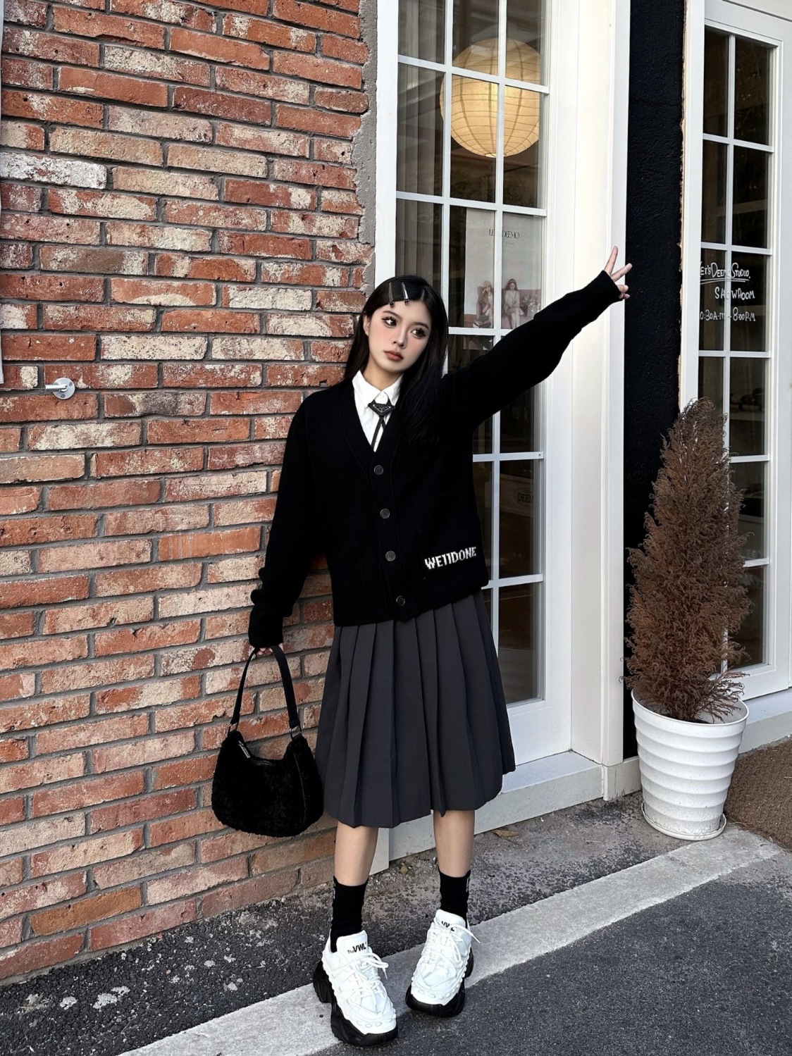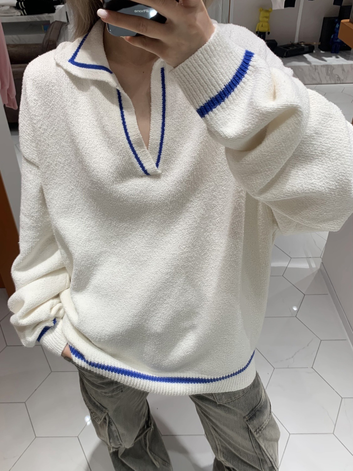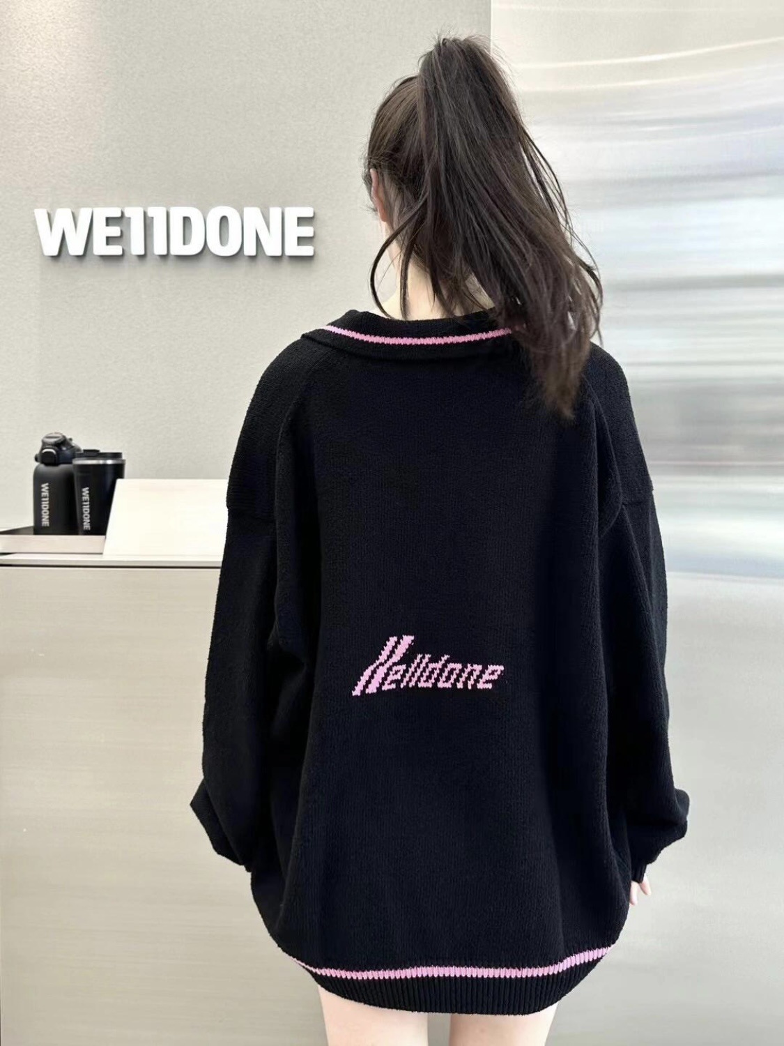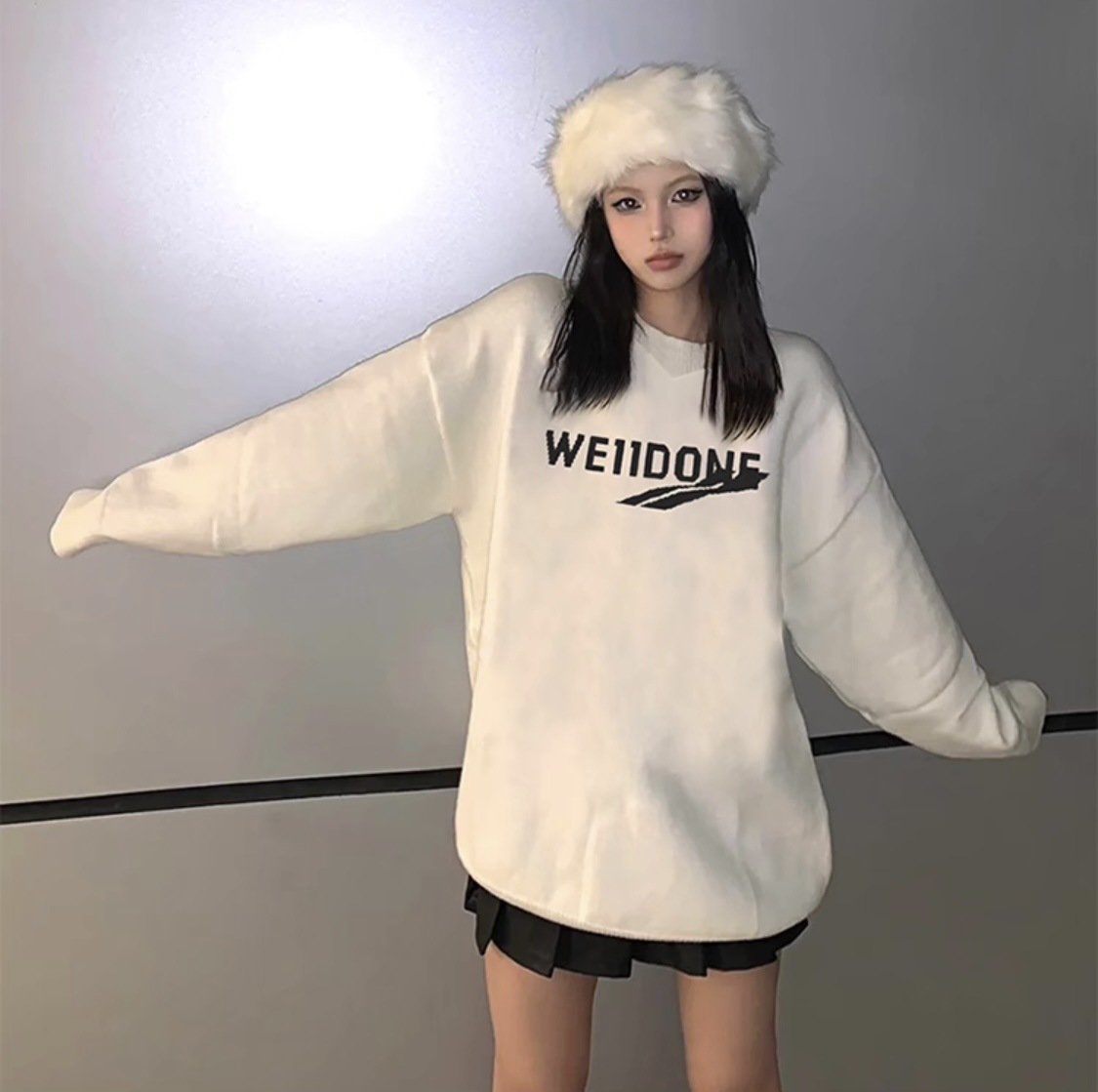 WE11 가을과 겨울 새로운 간단한 편지 자카드 올매치 게으른 스타일 한국 캐주얼 느슨한 크루 넥 스웨터스토어 가기
