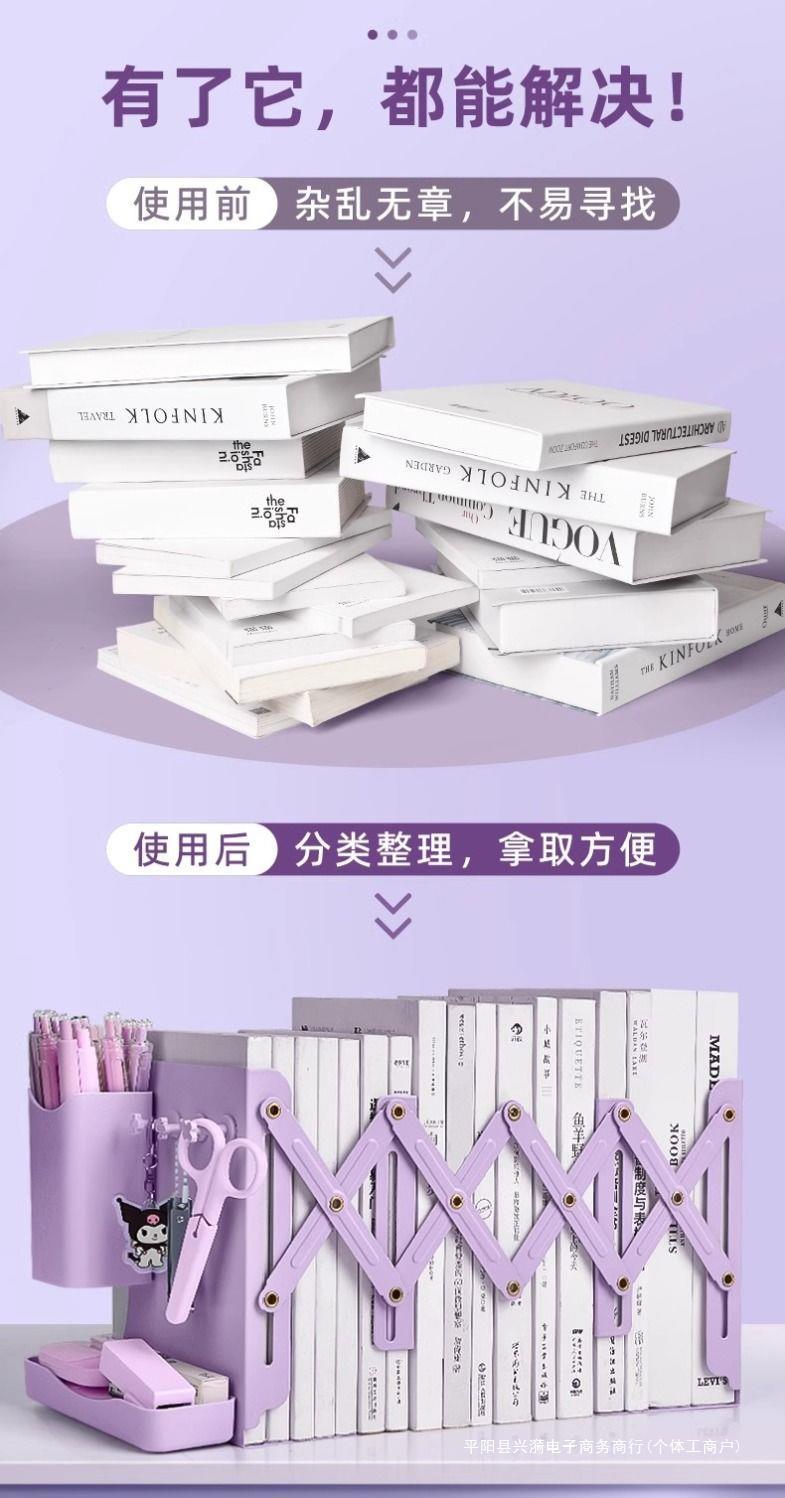 보라색 다기능 책 스탠드 북 스탠드 책장 데스크탑 책장 보관 랙 망원경 책장 책상 개폐식 책 스탠드스토어 가기