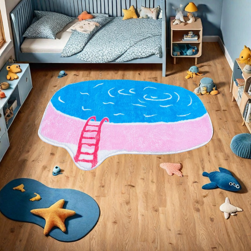 침실용 원형 인스 스타일 카펫 귀엽고 트렌디한 아트 카펫 도파민 수영장 부드러운 인조 캐시미어 바닥 매트스토어 가기