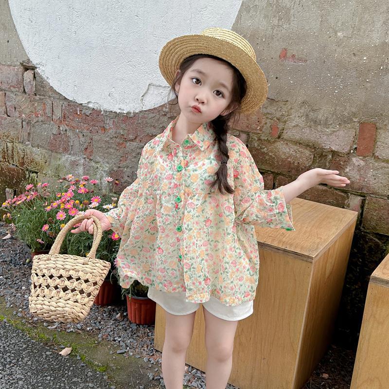 소녀의 서양식 꽃 여름 얇은 느슨한 태양 보호 의류 아기의 2025 새로운 긴 소매 재킷 여름 통기성 유행스토어 가기
