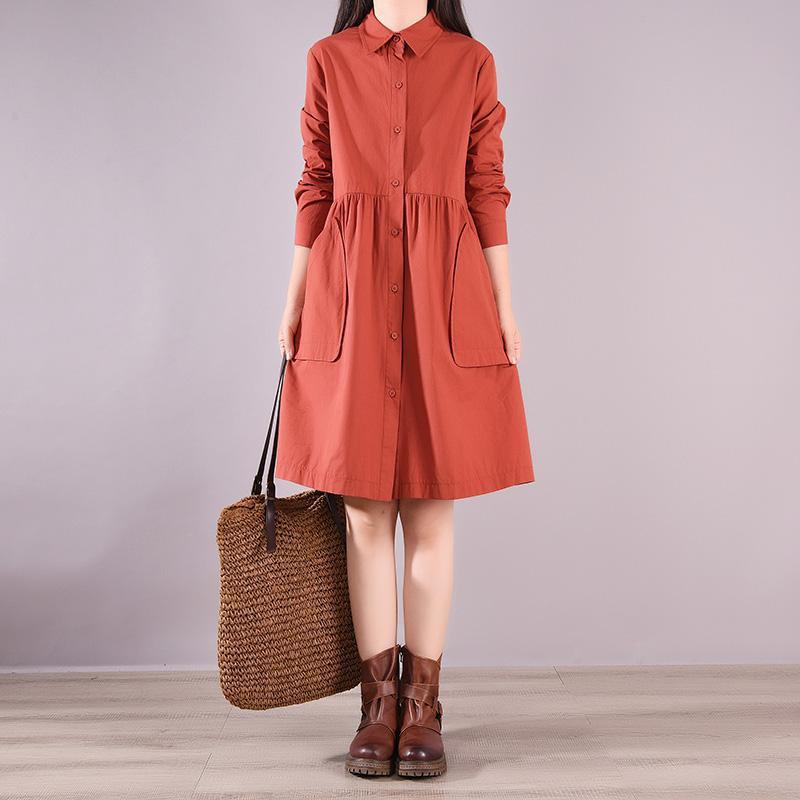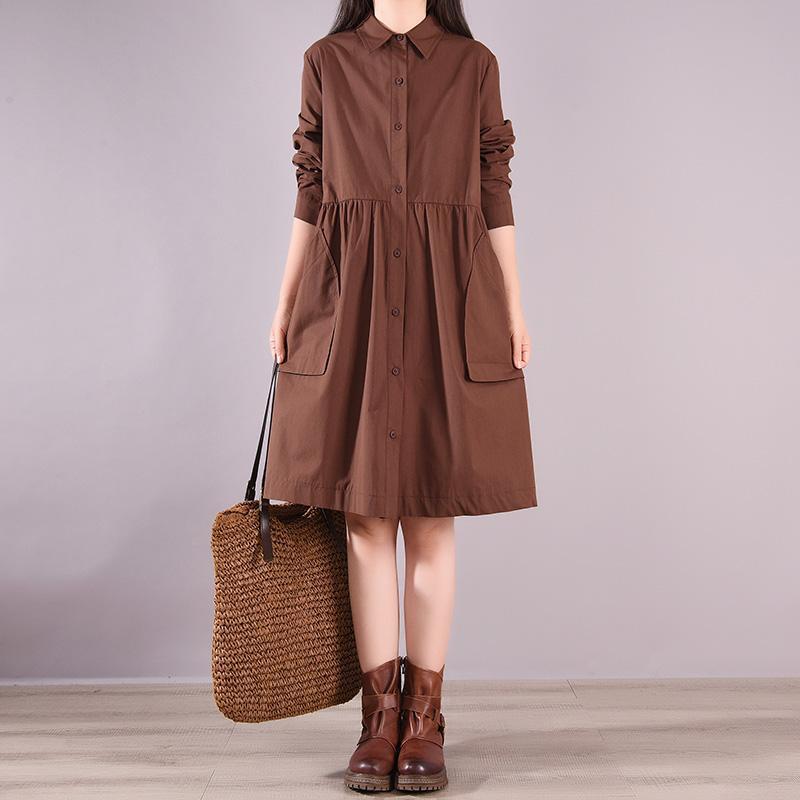 면 2024 봄과 가을 새로운 A-워드 단색 단일 브레스트 주름 멀티 사이즈 긴 원피스 셔츠