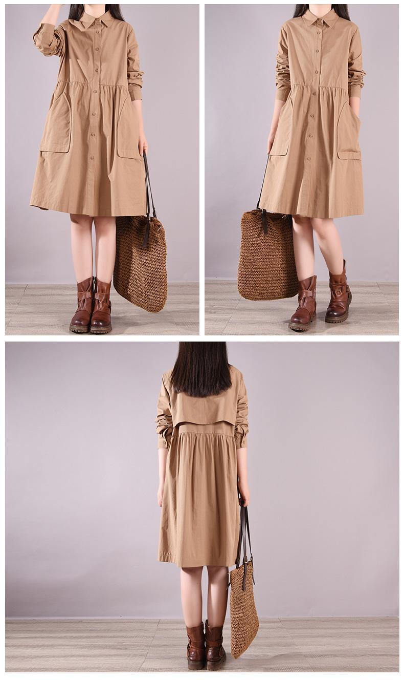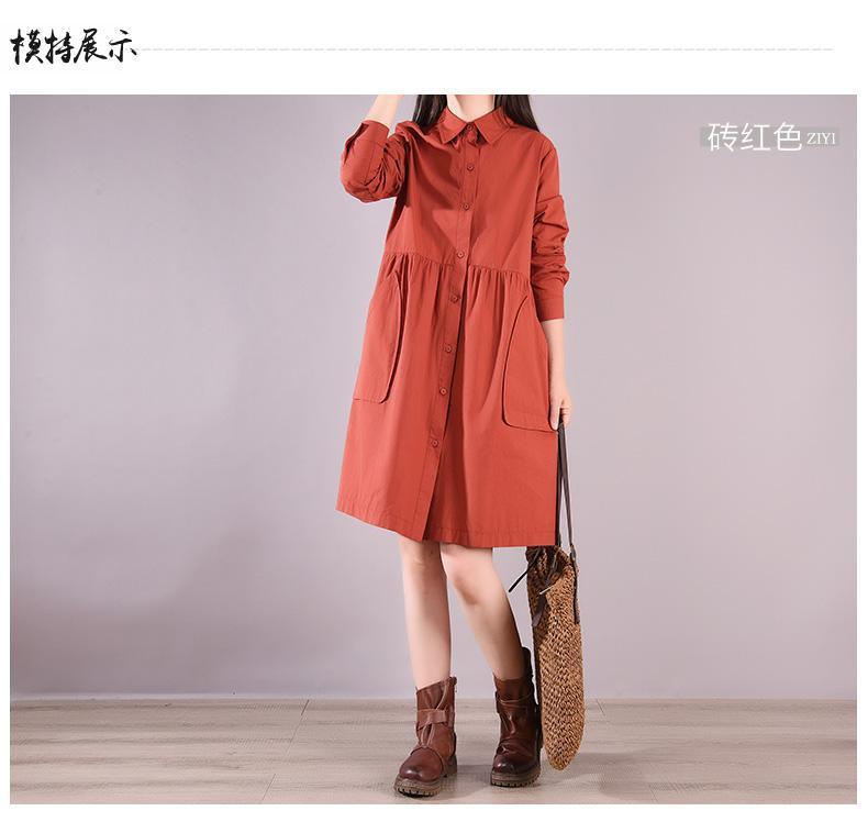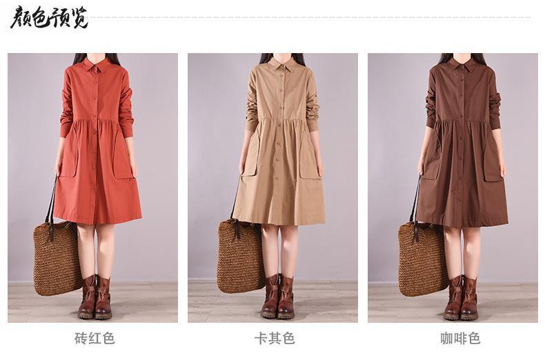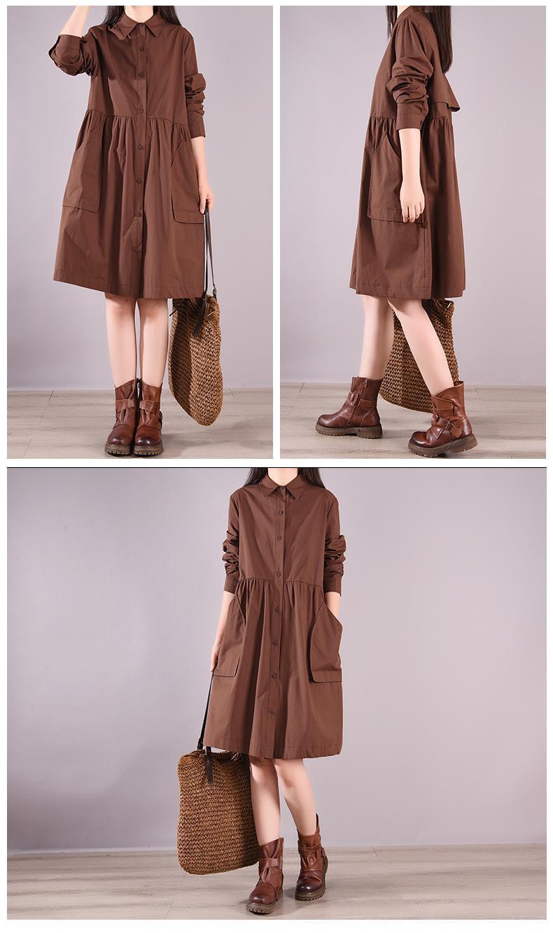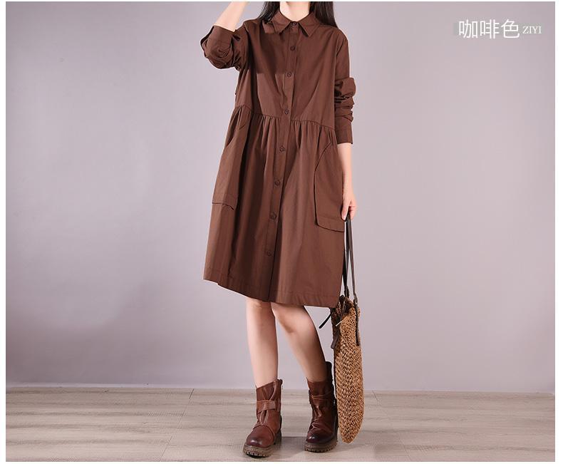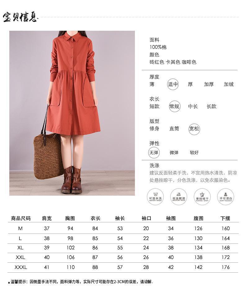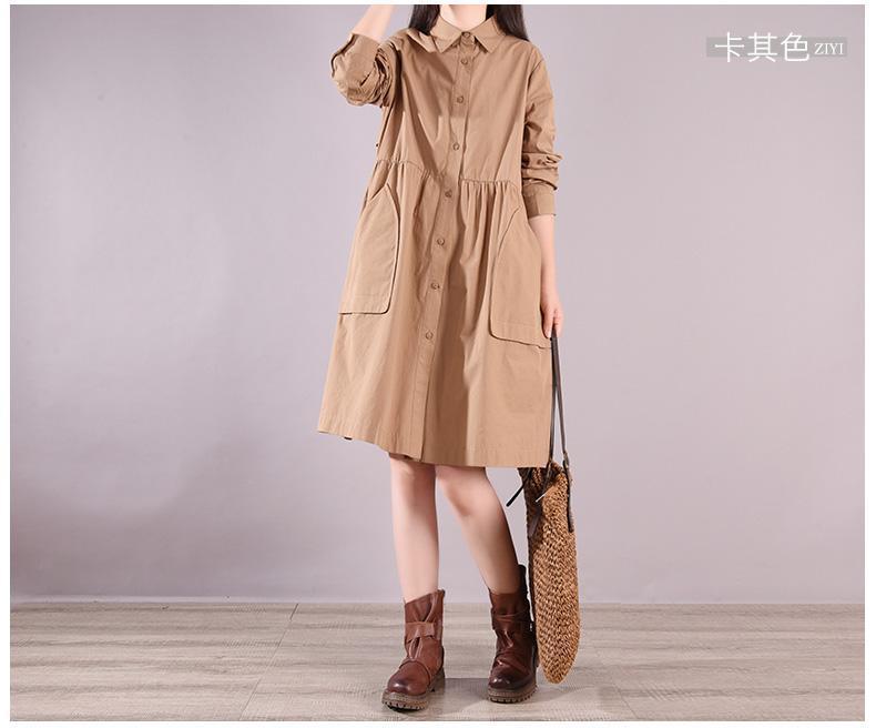 면 2024 봄과 가을 새로운 A-워드 단색 단일 브레스트 주름 멀티 사이즈 긴 원피스 셔츠스토어 가기