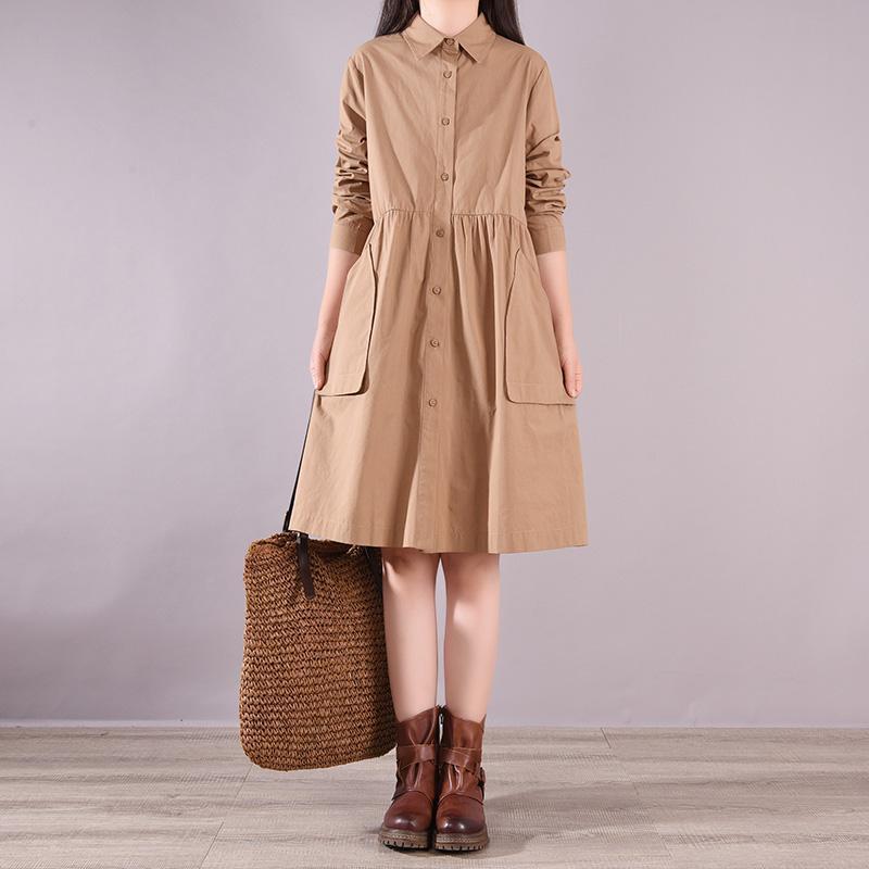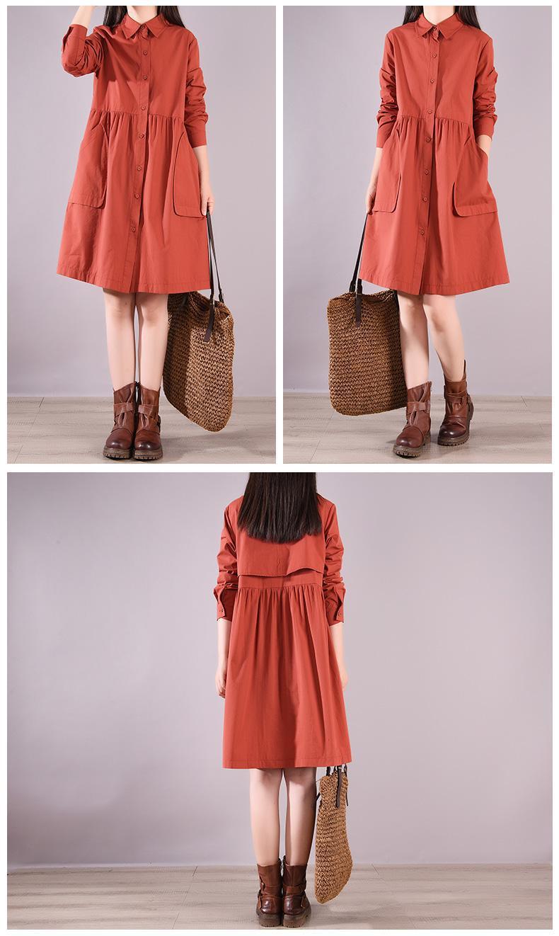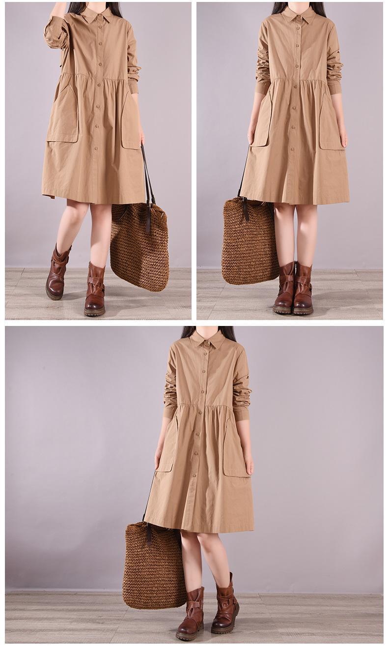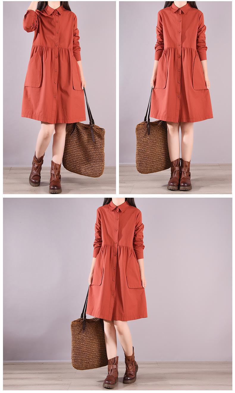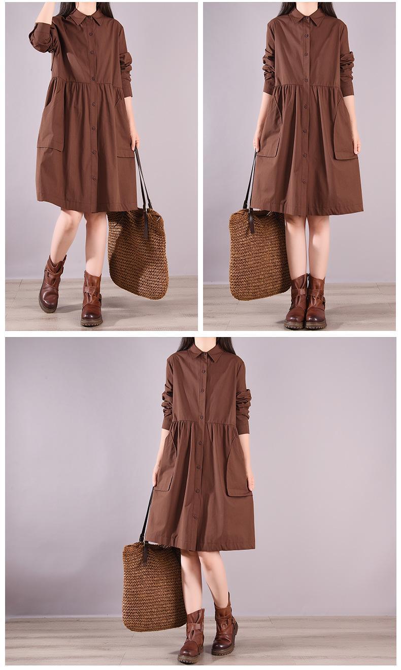 면 2024 봄과 가을 새로운 A-워드 단색 단일 브레스트 주름 멀티 사이즈 긴 원피스 셔츠스토어 가기