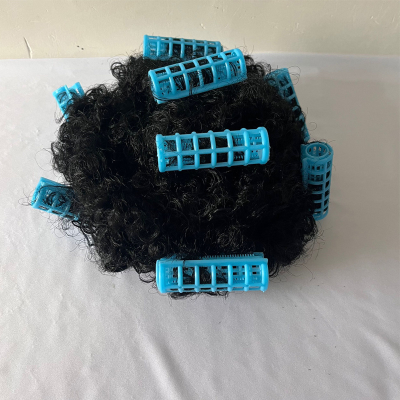 • 곱슬머리 후드 + 파란색 컬링 배럴