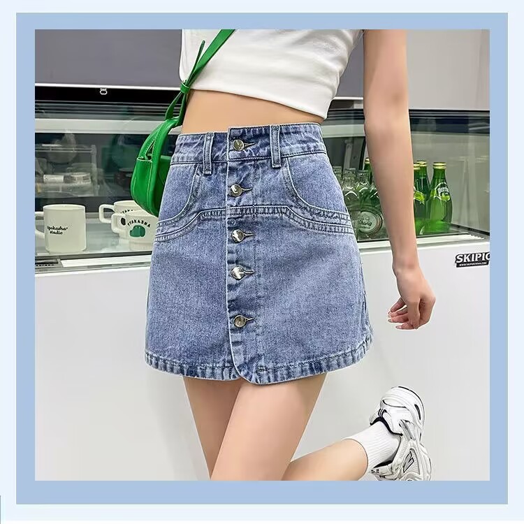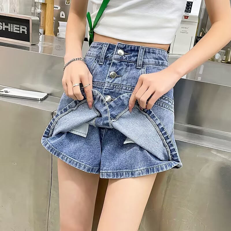 데님 짧은 치마 바지 2024 여성 여름 신작 한국식 하이 웨이스트 톨 슬리밍 디자인 센스 틈새 A 라인 스커트 바지스토어 가기
