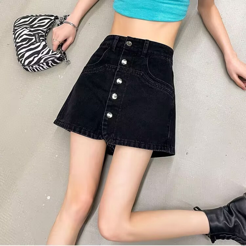 데님 짧은 치마 바지 2024 여성 여름 신작 한국식 하이 웨이스트 톨 슬리밍 디자인 센스 틈새 A 라인 스커트 바지