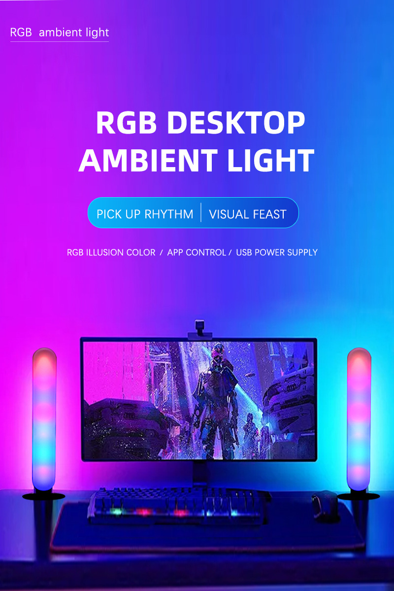 국경 폭발 USB 데스크탑 분위기 램프 블루투스 음악 RGB 리듬 LED 전기 경쟁 분위기 램프 데스크탑 램프 APP스토어 가기