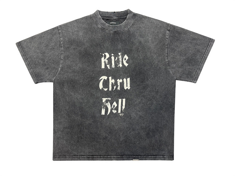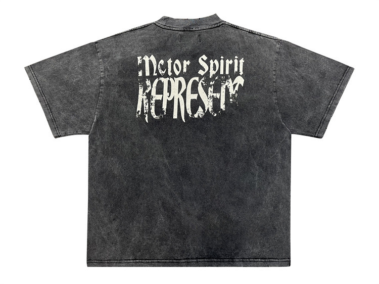 올바른 판 리젠트 트랙 오래된 편지 씻은 짧은 소매 빈티지 하이 스트리트 느슨한 파괴 티셔츠스토어 가기