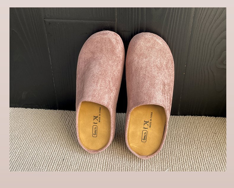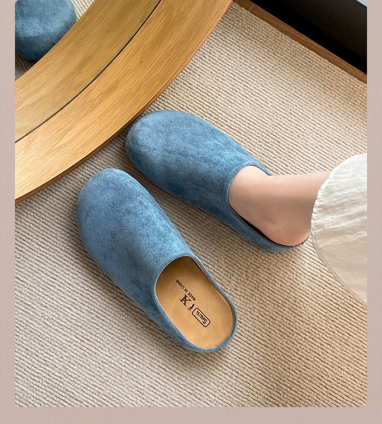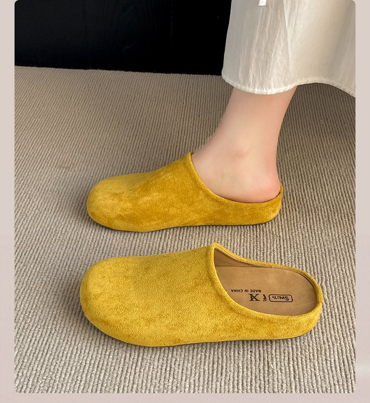 발가락 플랫 슬리퍼 2025 새로운 스웨이드 슬립 온 홈 슬리퍼 레트로 캐주얼 라운드 로우 힐 슬리퍼 여성용스토어 가기