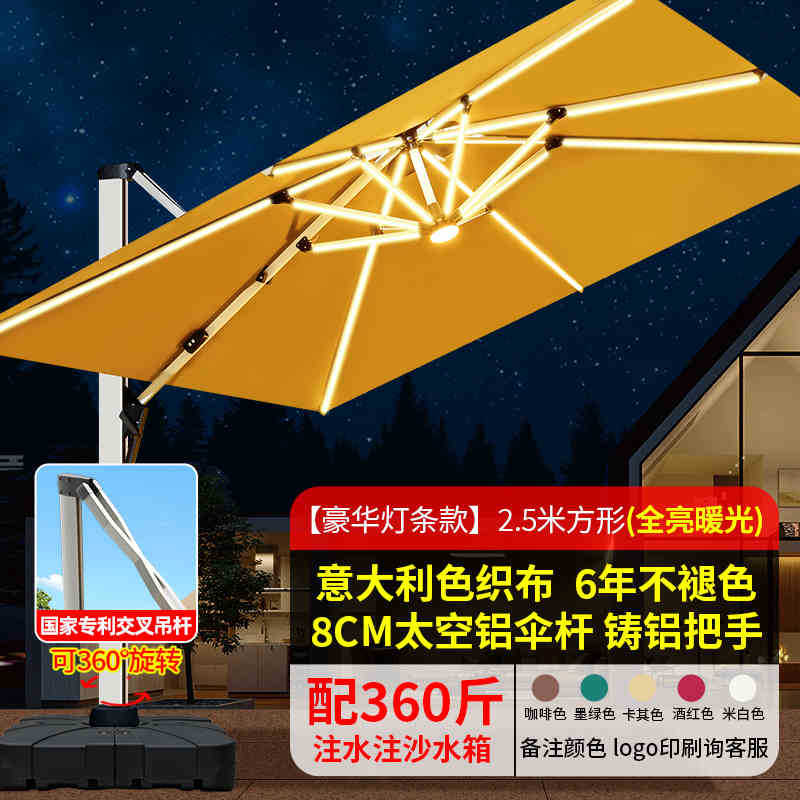 태양광 충전식 안뜰 대형 우산, 야외 파라솔, 상업용 파라솔, 커피숍 4각 우산, 테라스 로마 우산스토어 가기