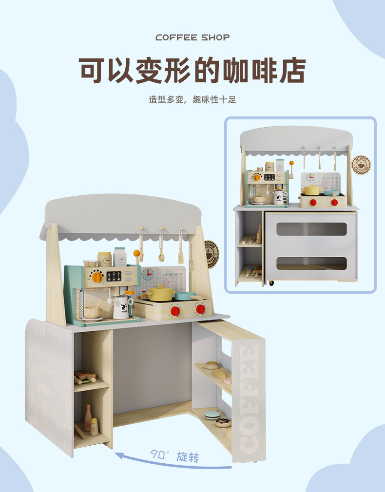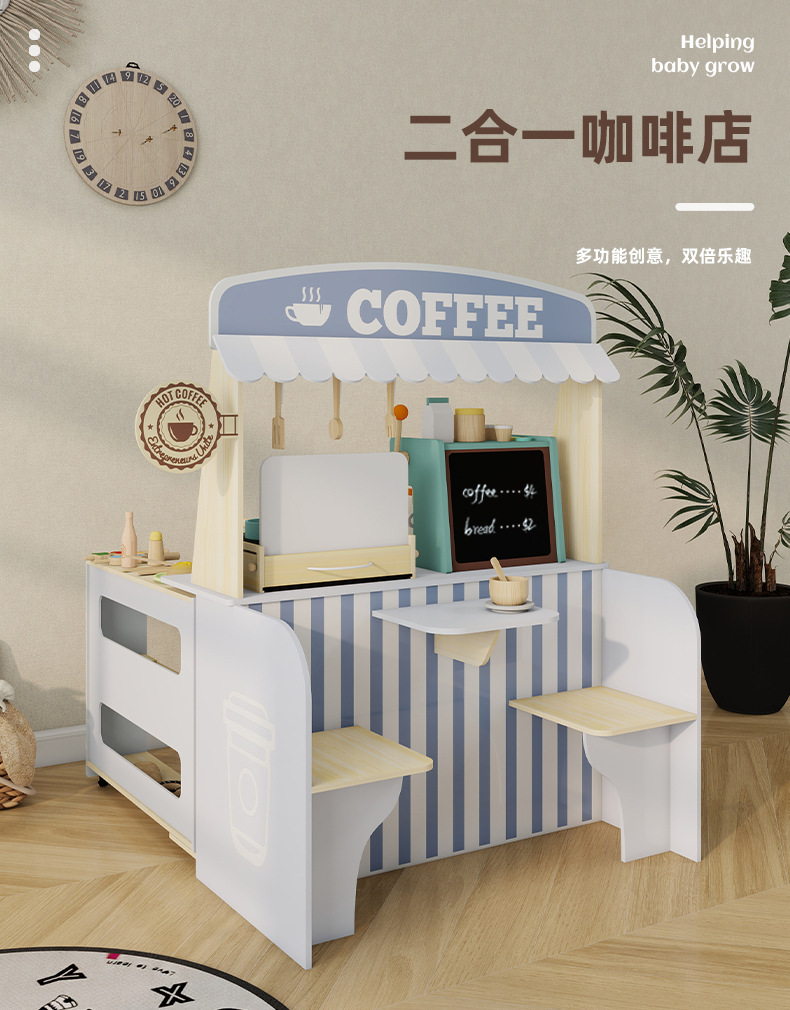 어린이 시뮬레이션 놀이 집 커피 숍 시뮬레이션 마구간 운동 아기의 사회적 기술 나무 주방 장난감스토어 가기