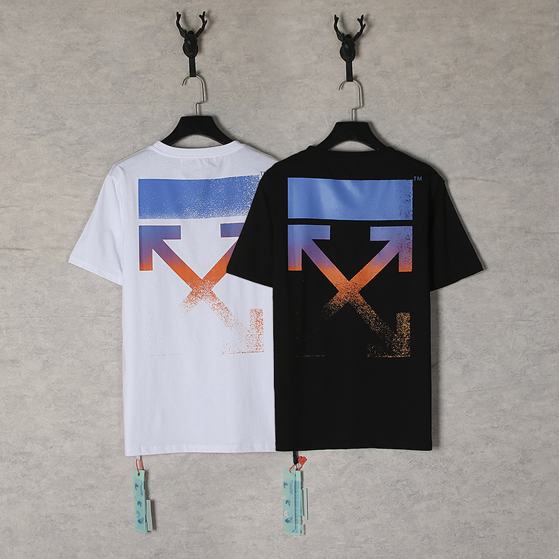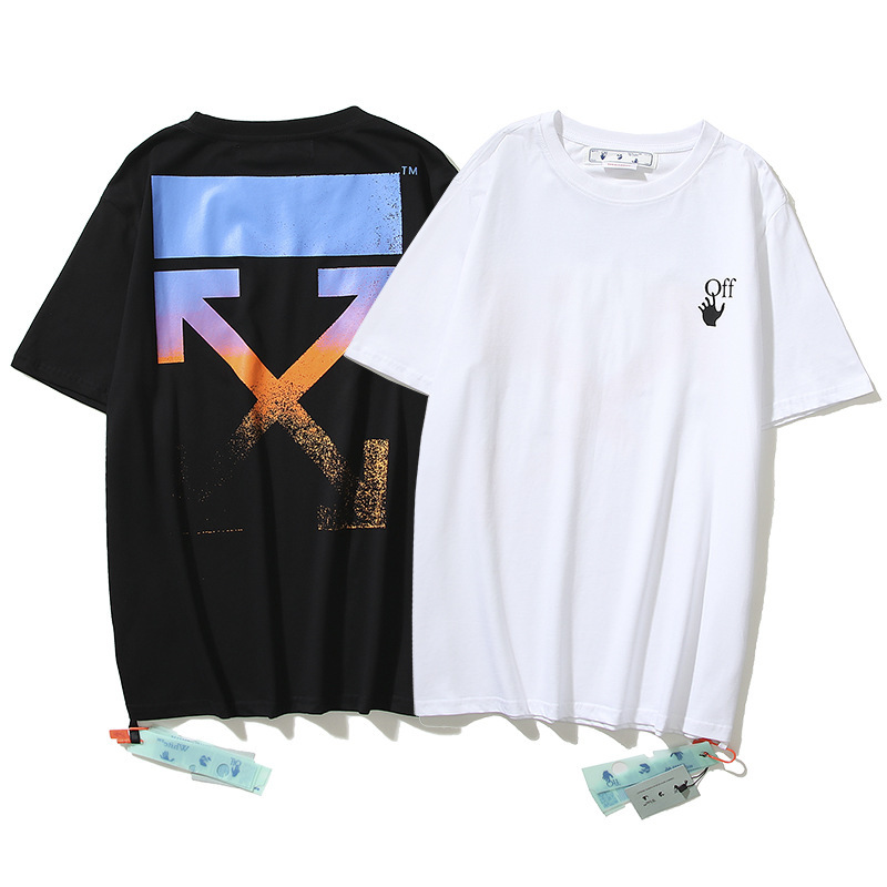 여름 새로운 패션 브랜드 커플 반팔 티셔츠 라운드 넥 오프 화이트 편지 패턴 풀린 버전스토어 가기