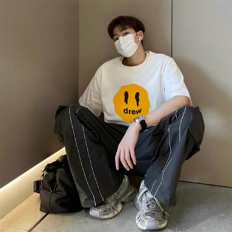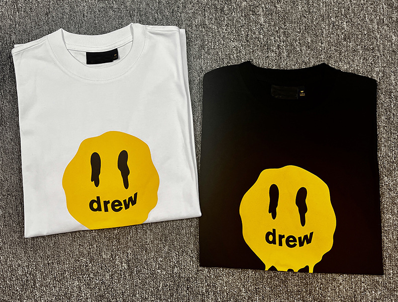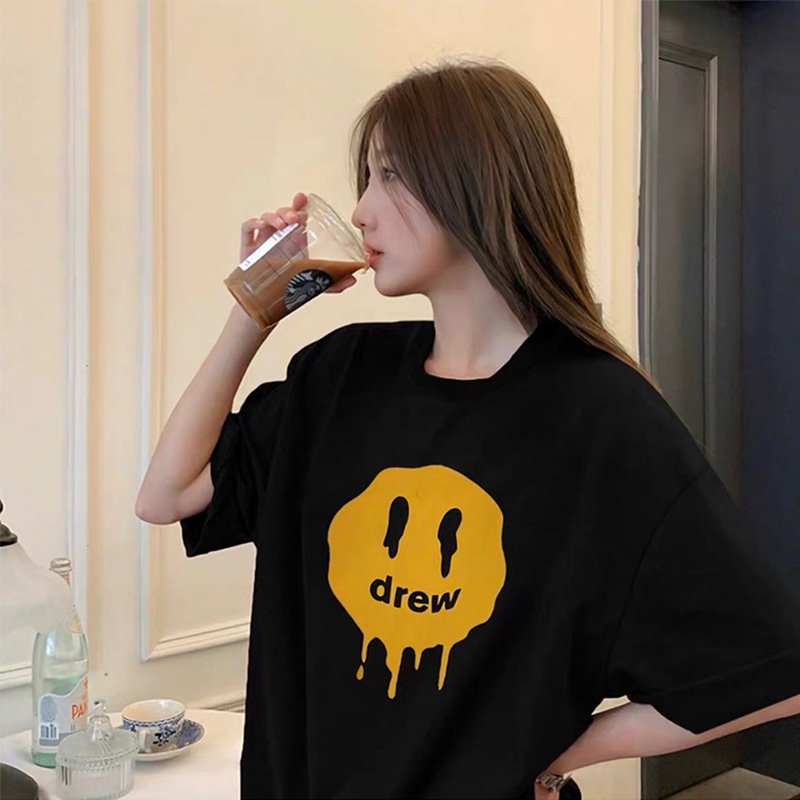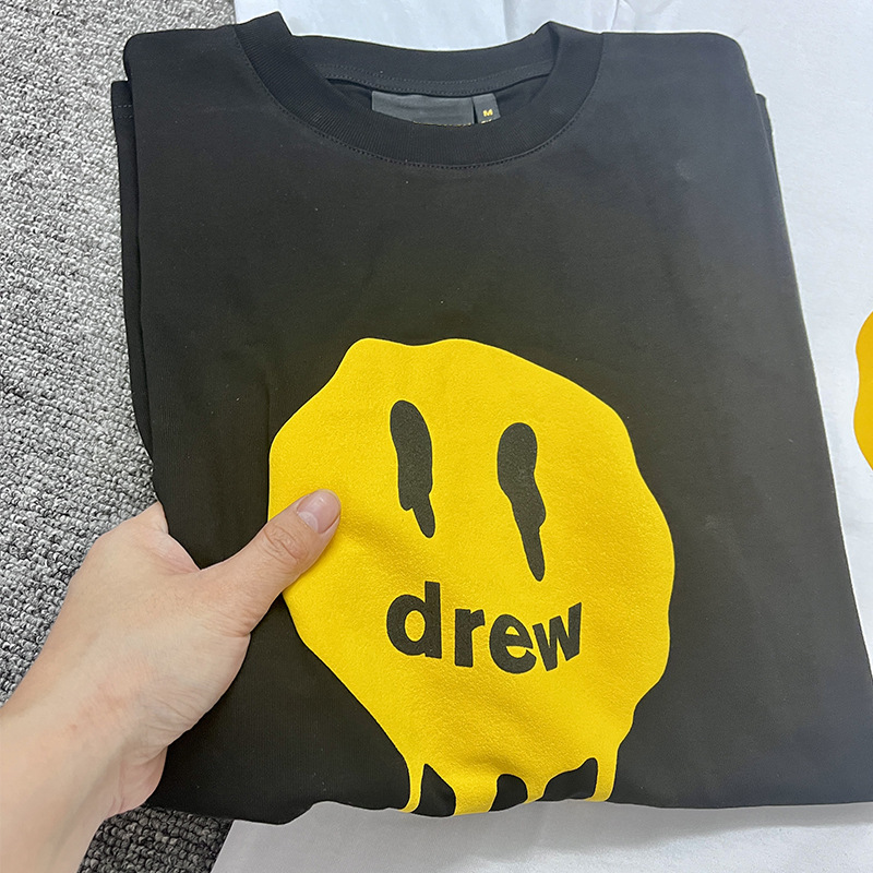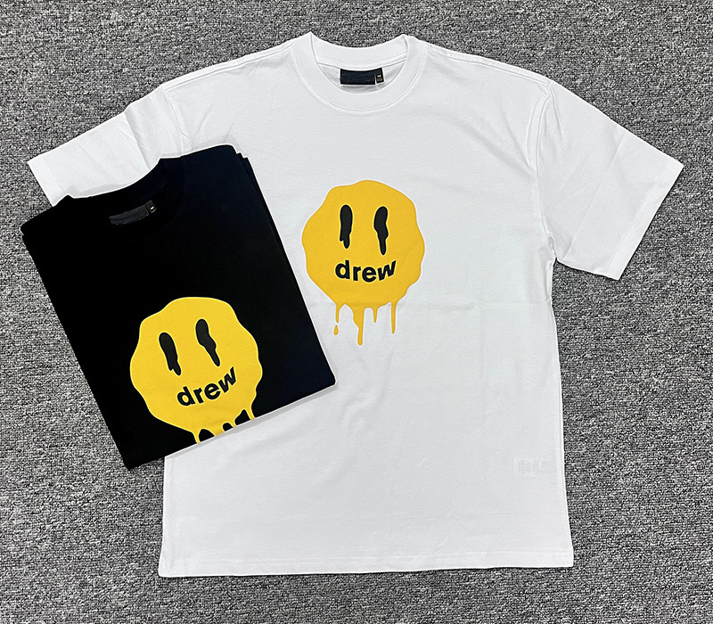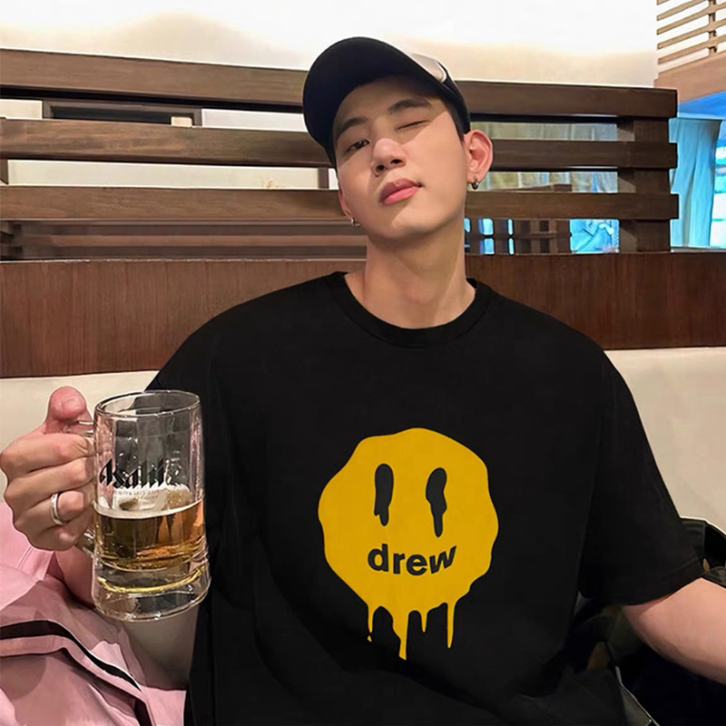 Drew Smiley Foam 인쇄 틈새 트렌디 브랜드 미국 여름 느슨한 남성용 최고 반팔 티셔츠스토어 가기