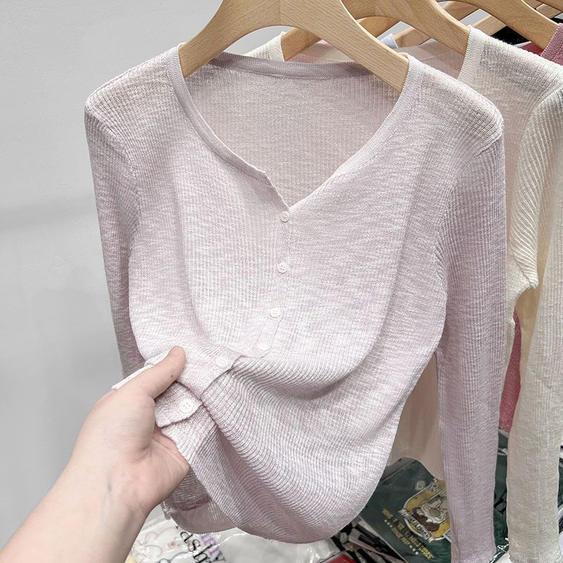 여름 아이스 실크 선 스크린 카디건 여성 외관 디자인 얇은 매칭 서스펜더 스커트 긴팔 스웨터 코트 탑