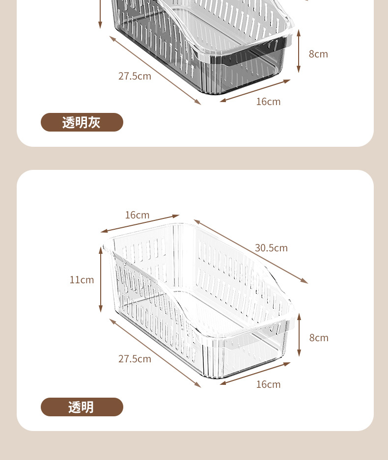 • ABX028-냉장고수납함-투명그레이 [2개입]