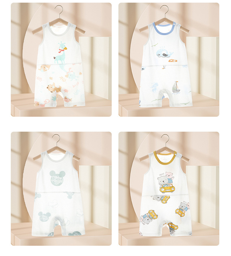 아기 조끼 종수트 여름 얇은 민소매 슬링 신생아 반바지 하퍼 뼈없는 등반 옷 아기 잠옷스토어 가기