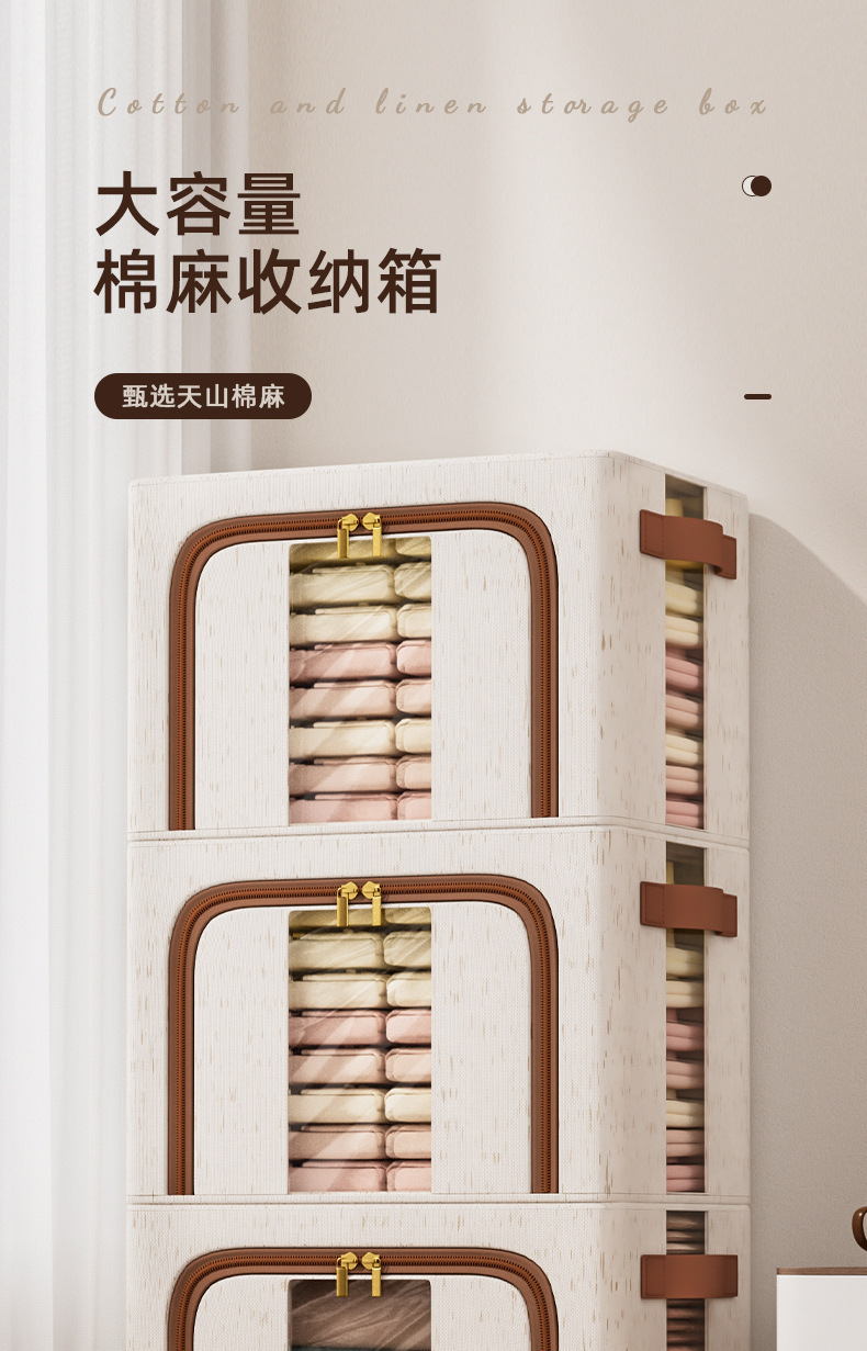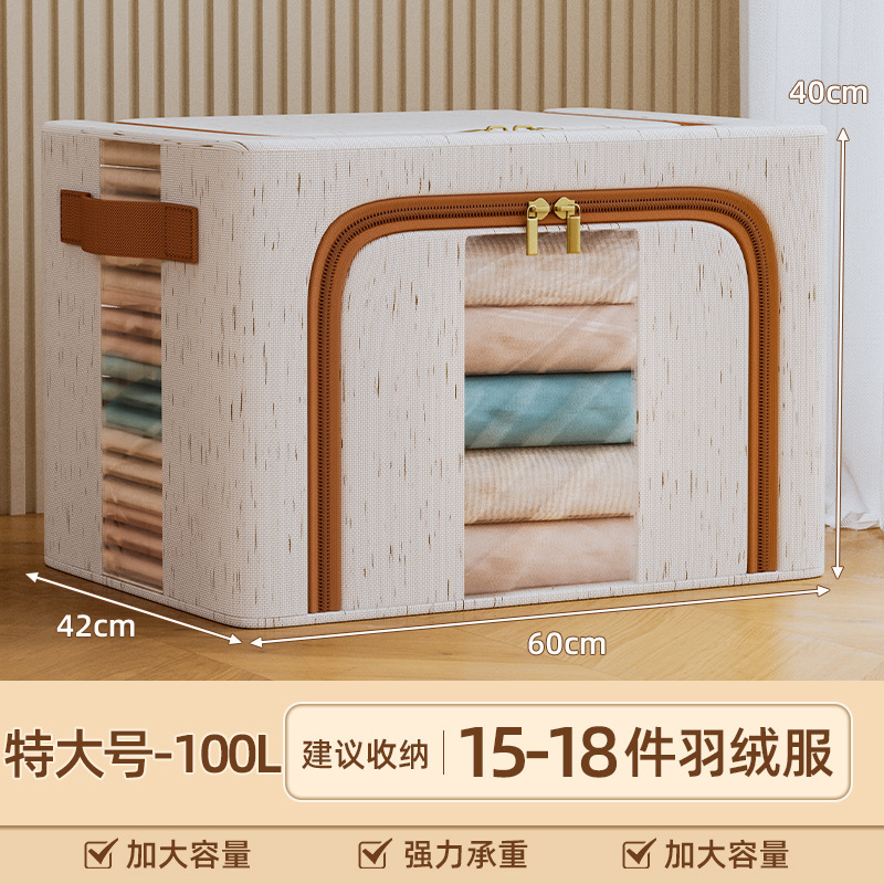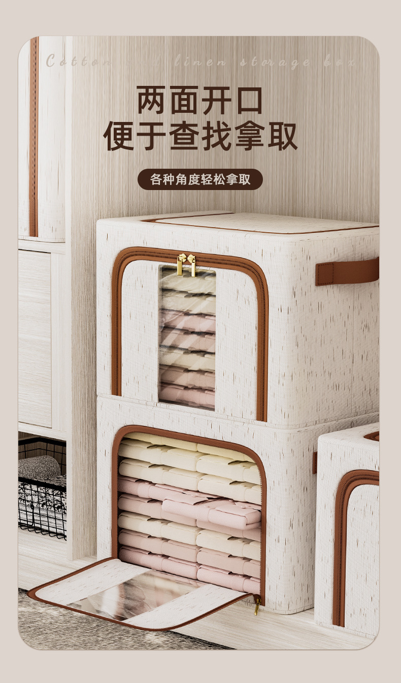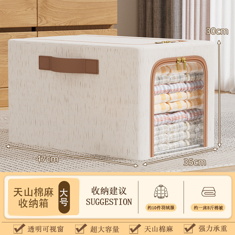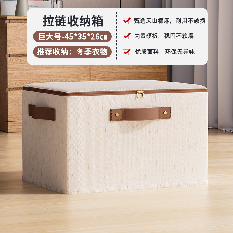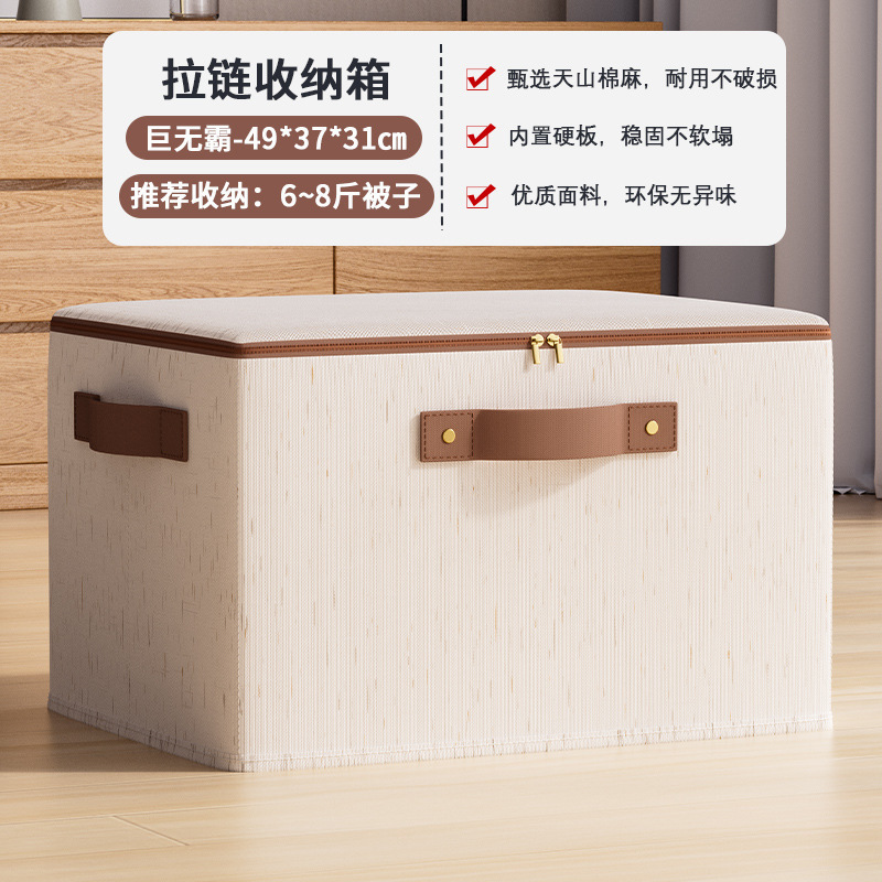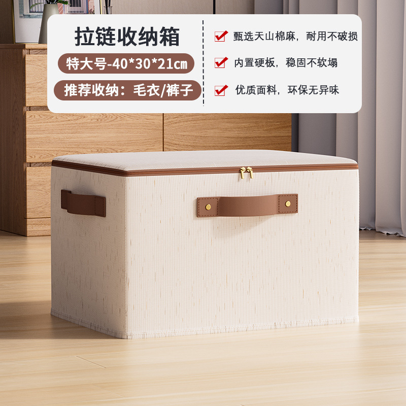 면 및 린넨 지퍼 의류 보관 상자 대형 용량 옷장 보관 상자 뚜껑 접이식 투명 보관 상자스토어 가기