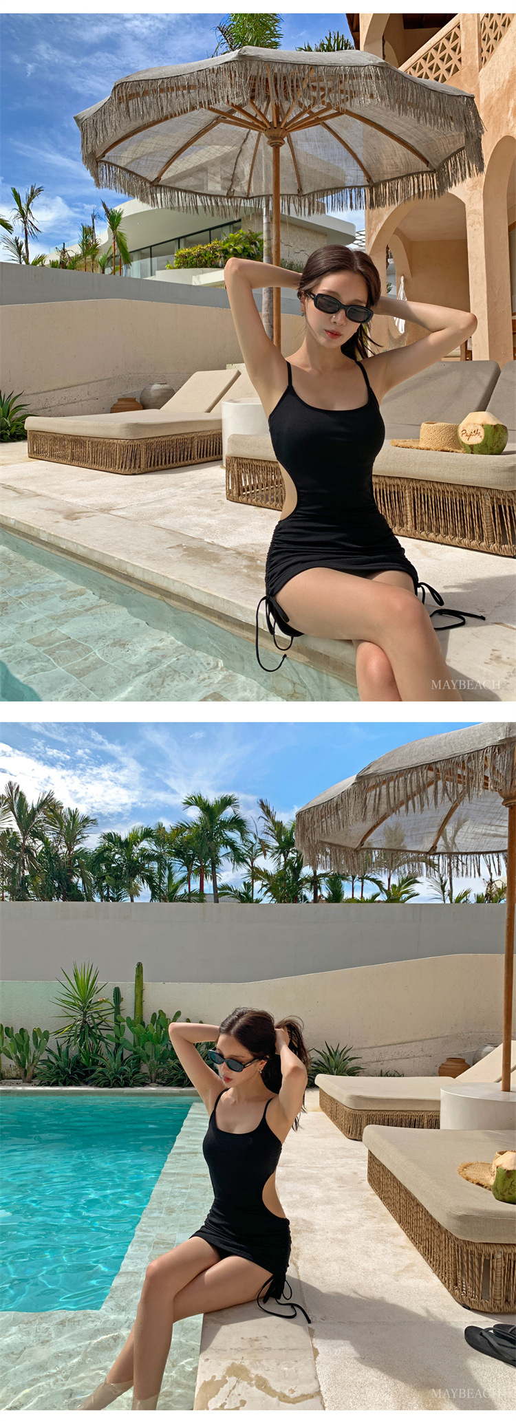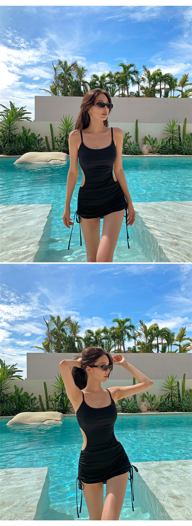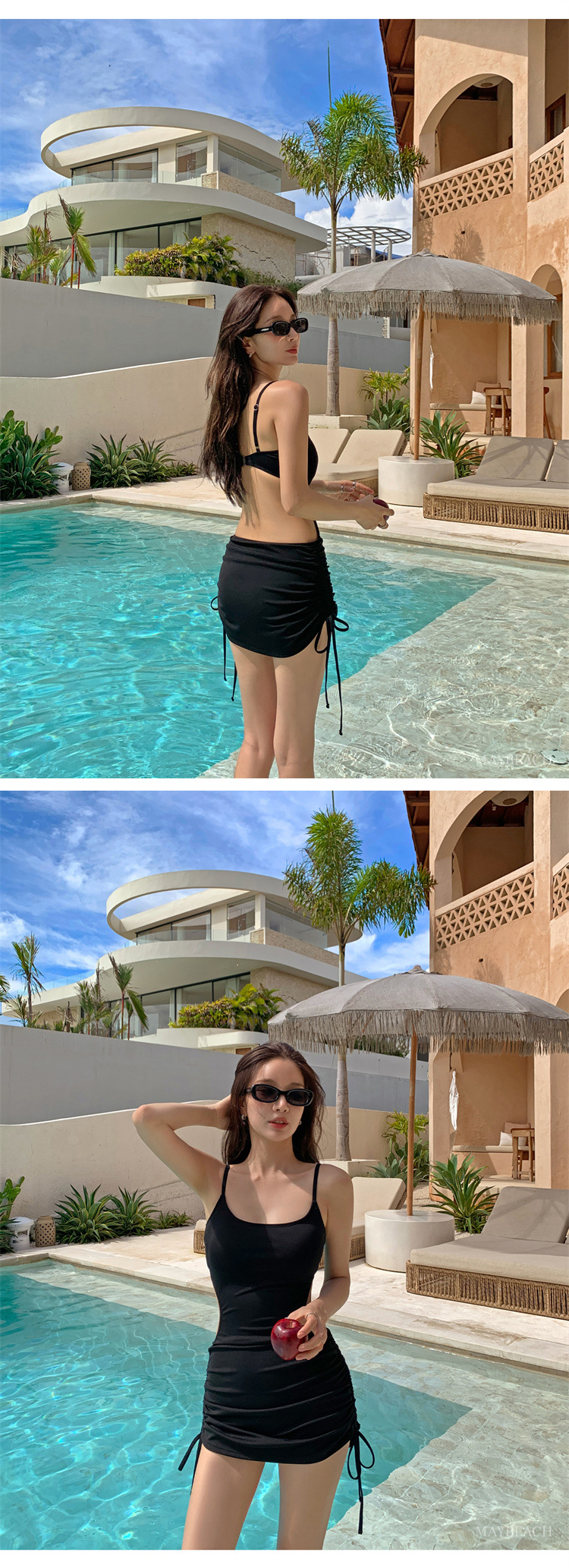 2025년 새로운 국경 간 한국어 버전 섹시한 원피스 솔리드 컬러 자외선 차단제 드로스트링 스커트 스타일 슬리밍 여성용 온천 수영복스토어 가기