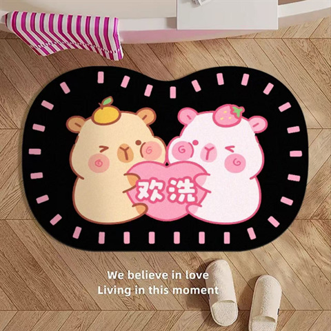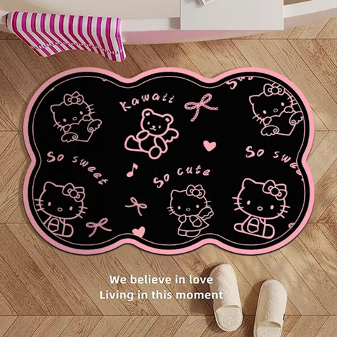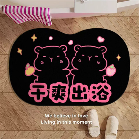만화 귀여운 검은 핑크 헬로 키티 모양의 디아톰 진흙 매트 욕실 샤워 물 흡수성 빠른 건조 발 매트