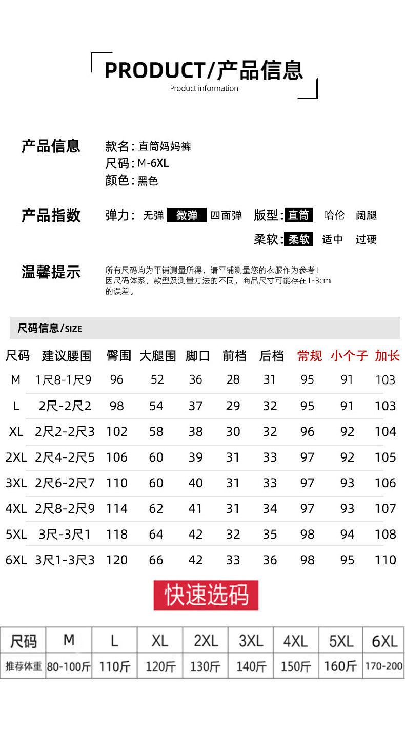 중년 · 노인 모바지 2024 봄 · 가을 새 높은 허리 스트레이트 바지 50 중년 · 노인 느슨한 작은 플러스 사이즈