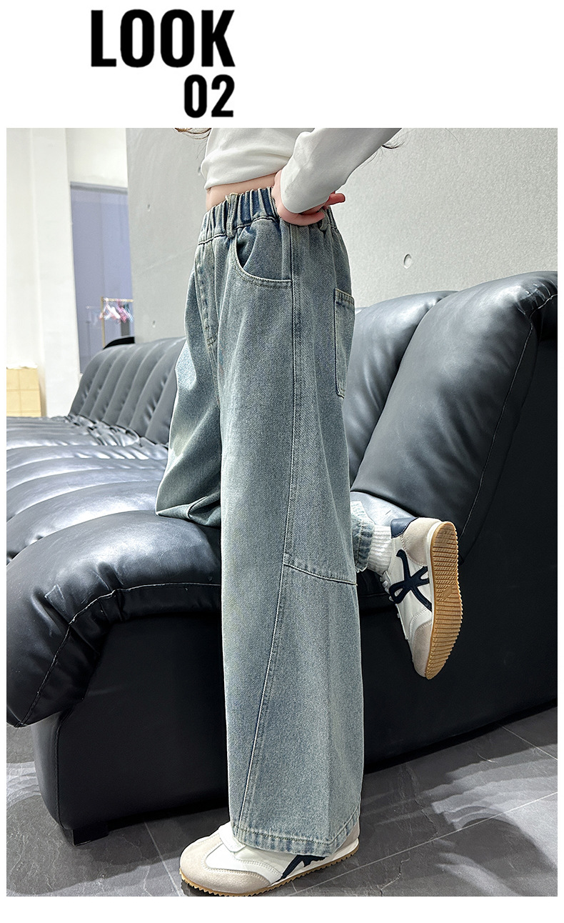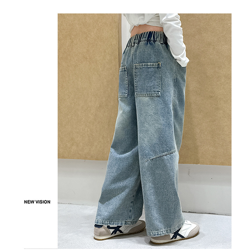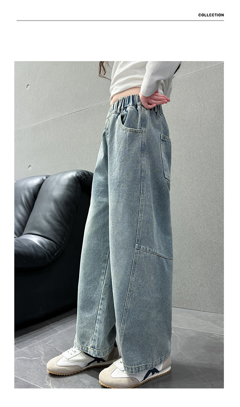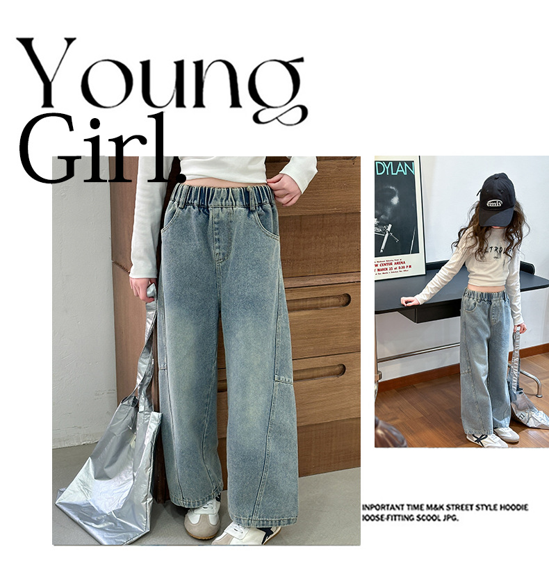 소녀 청바지 봄과 가을 2025 새로운 스타일 한국 스타일 서양식 캐주얼 패션 느슨한 직선 다리 넓은 다리 바지스토어 가기