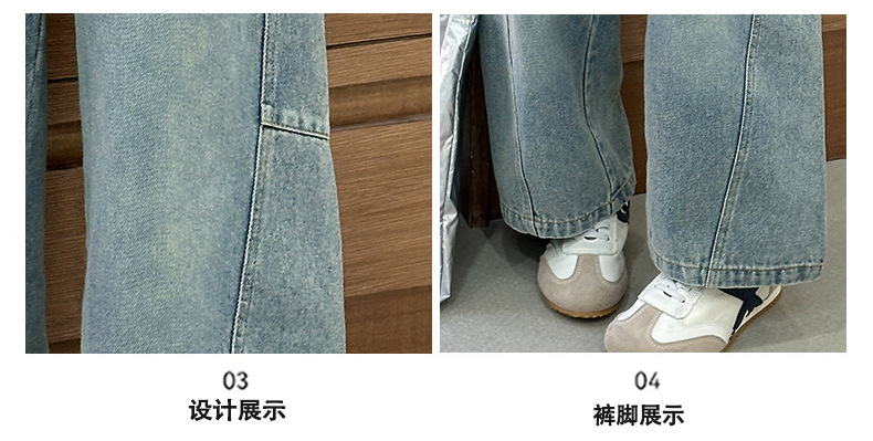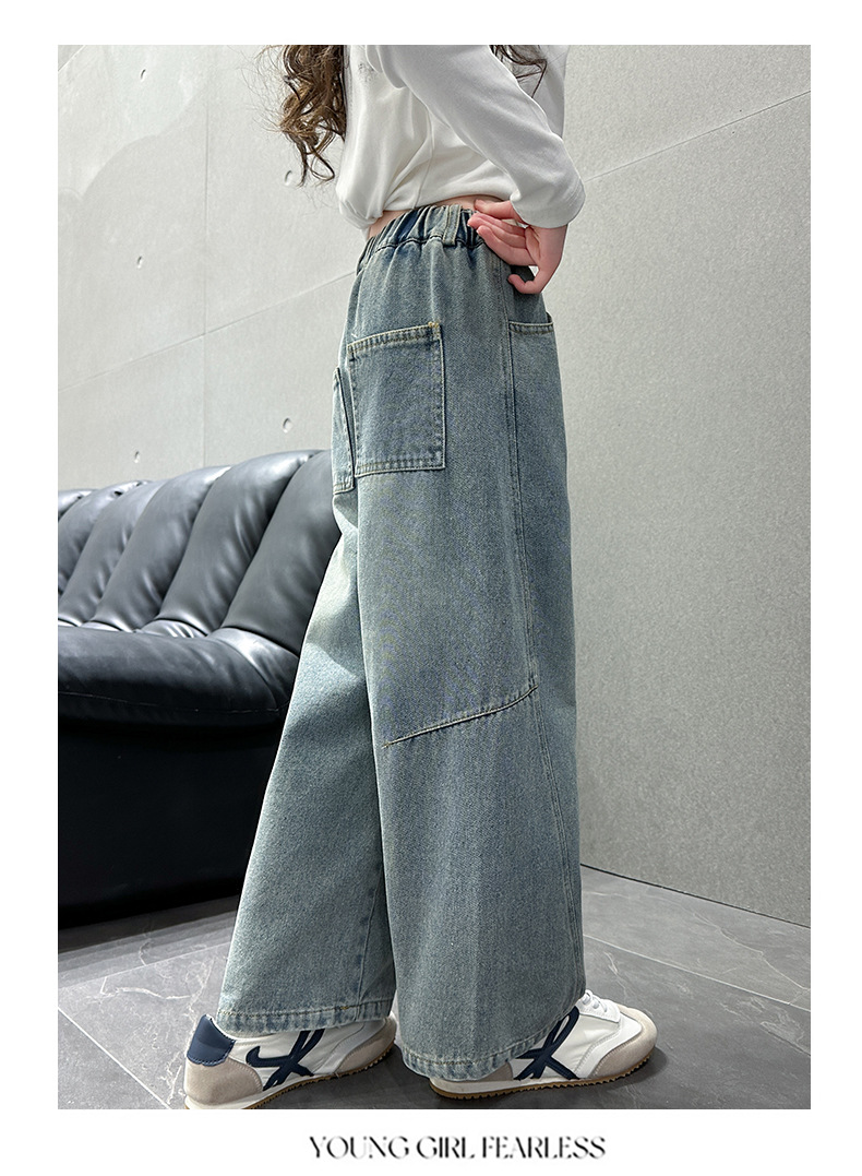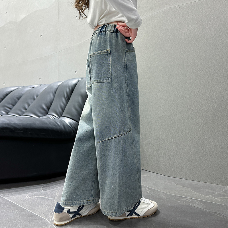 소녀 청바지 봄과 가을 2025 새로운 스타일 한국 스타일 서양식 캐주얼 패션 느슨한 직선 다리 넓은 다리 바지