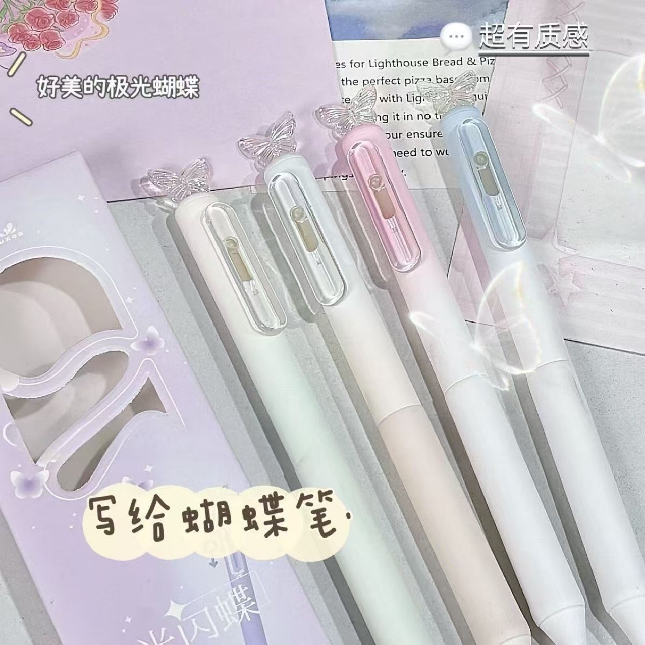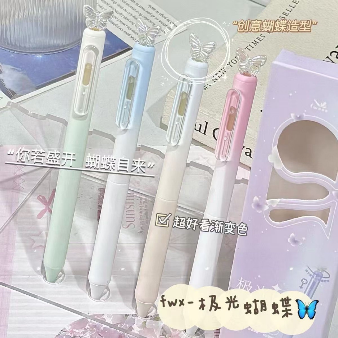 이미지 오로라 플래시 나비 회전 젤 펜 빠른 건조 높은 색상 값 검은 펜 학생 브러시 펜 CS 서명 펜