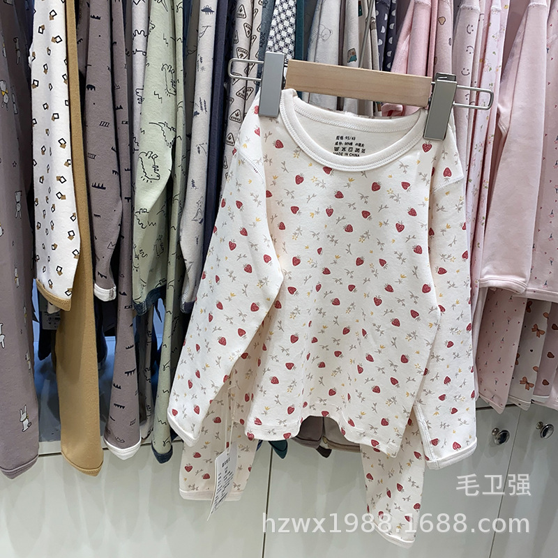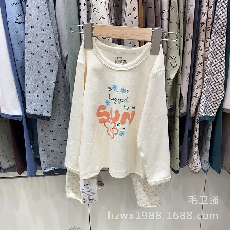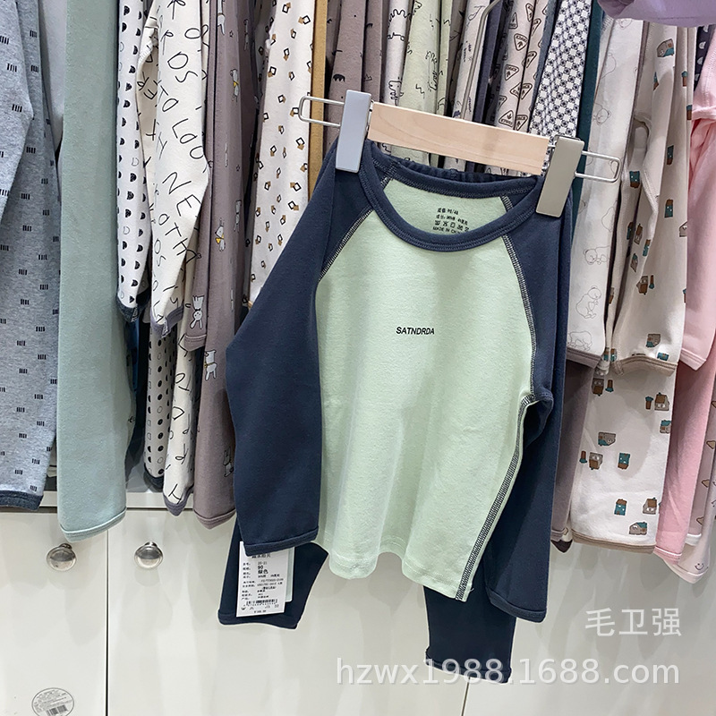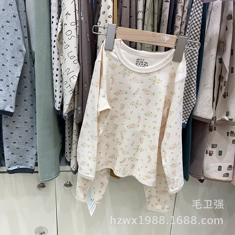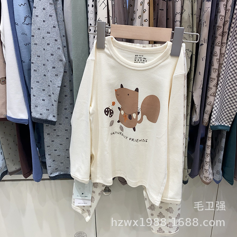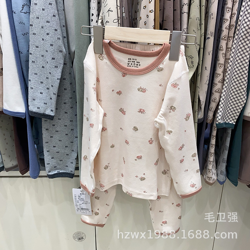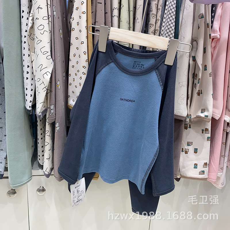 고품질 아동용 잠옷 가을 겨울 순면 홈웨어 남녀 아동용 울 라이닝 가을옷 가을바지 세트 보온 속옷스토어 가기