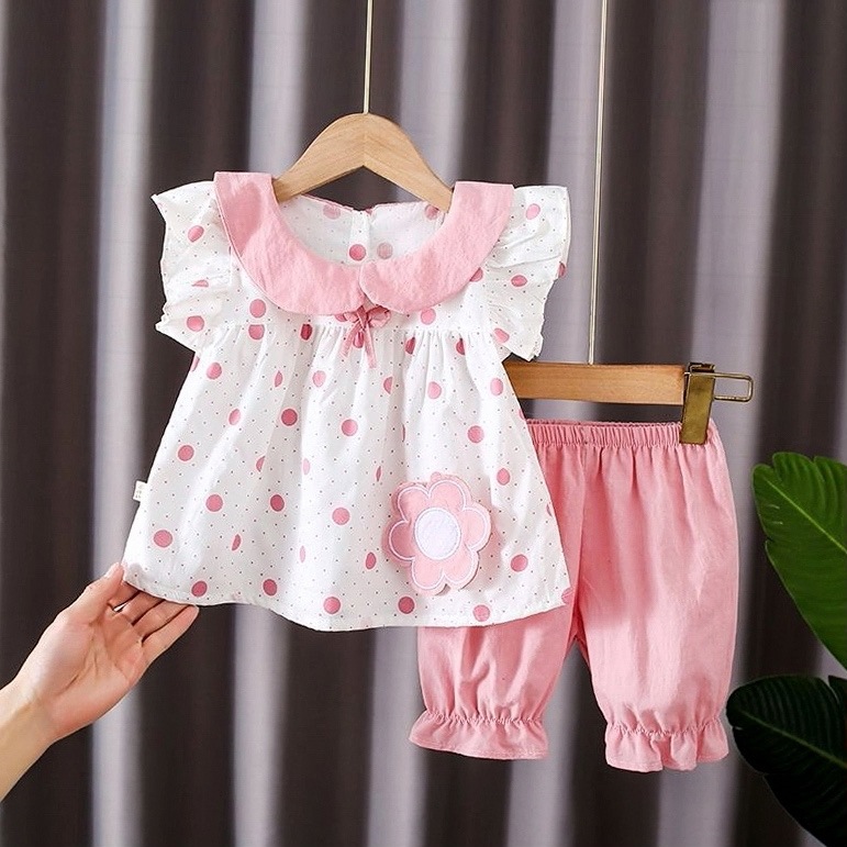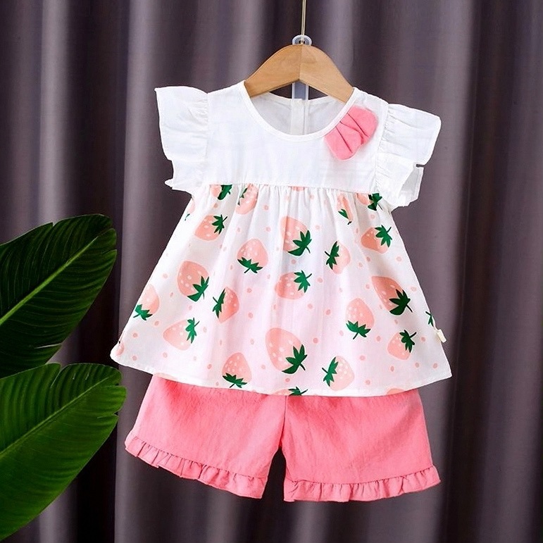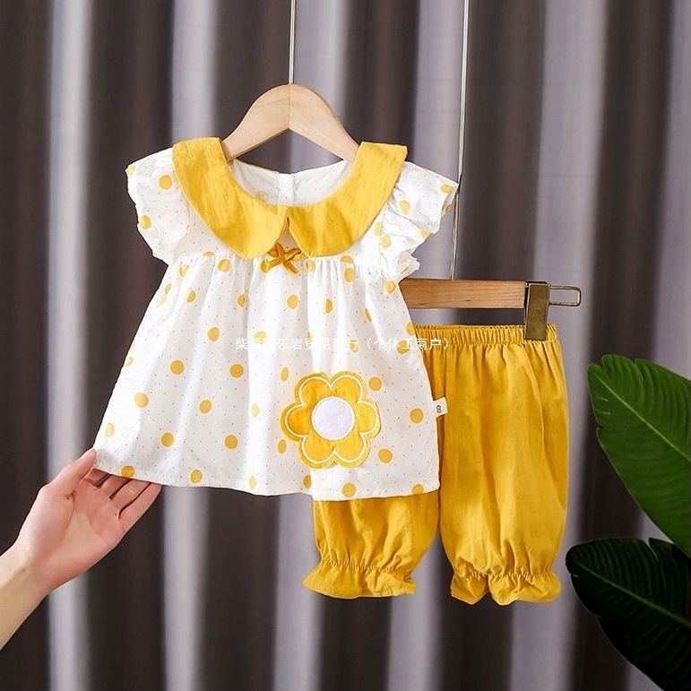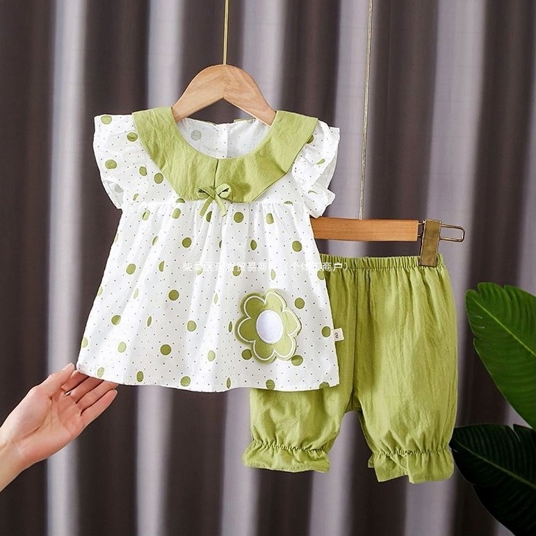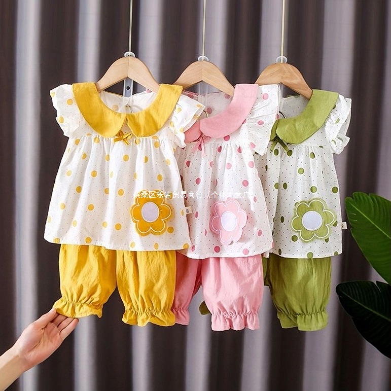 여름 옷 외국 스타일 세트 여자 새 아기 1 여성 아기-2-3 세 반 4 어린 소녀 짧은 소매 한국어 버전 도매스토어 가기