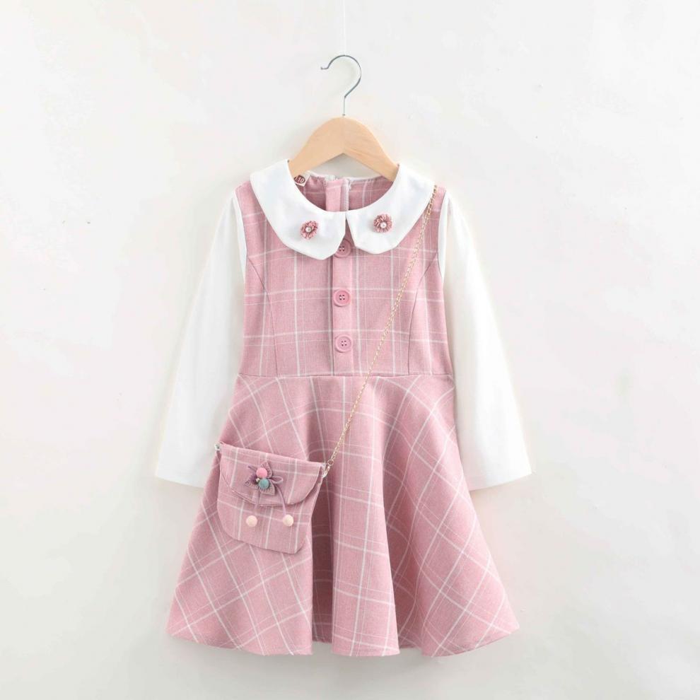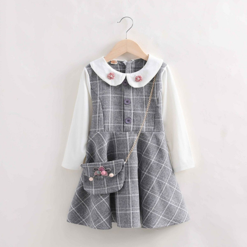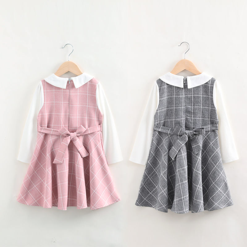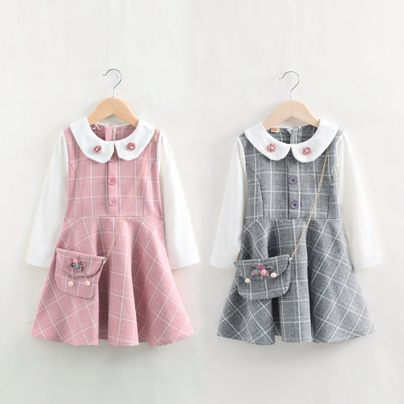 여자 원피스 가을 2024 새로운 대학 스타일 소녀 공주 원피스 긴 소매 격자 무늬 가짜 투피스 학생 치마스토어 가기