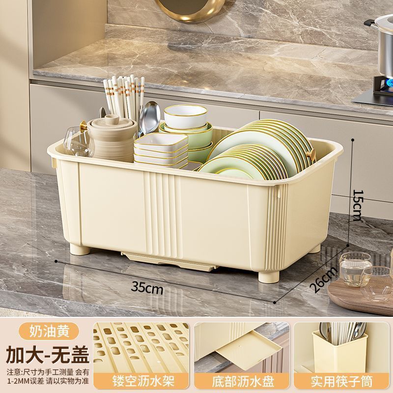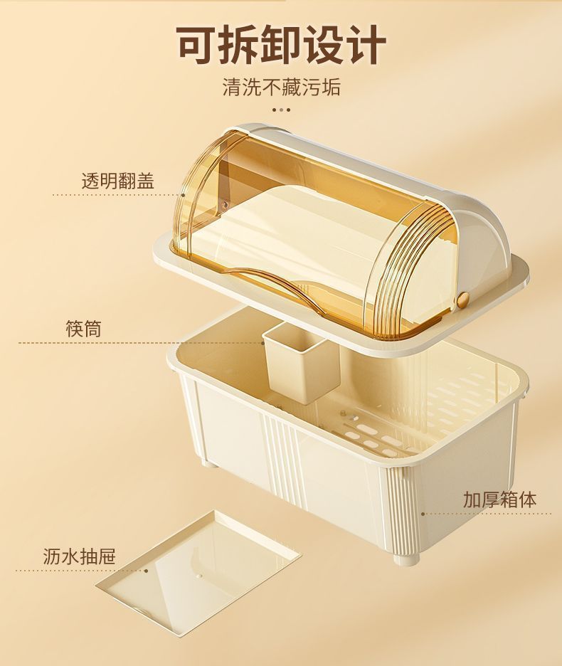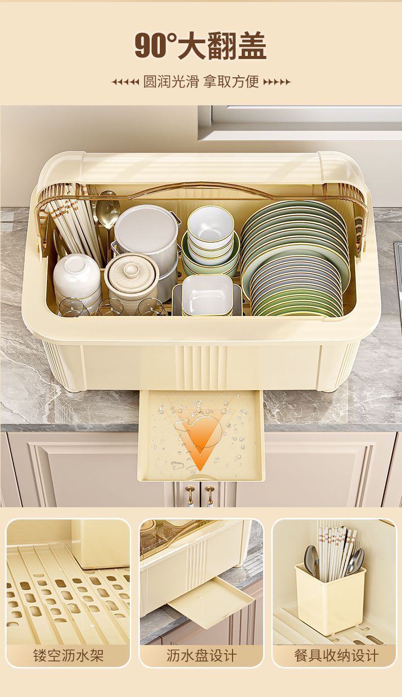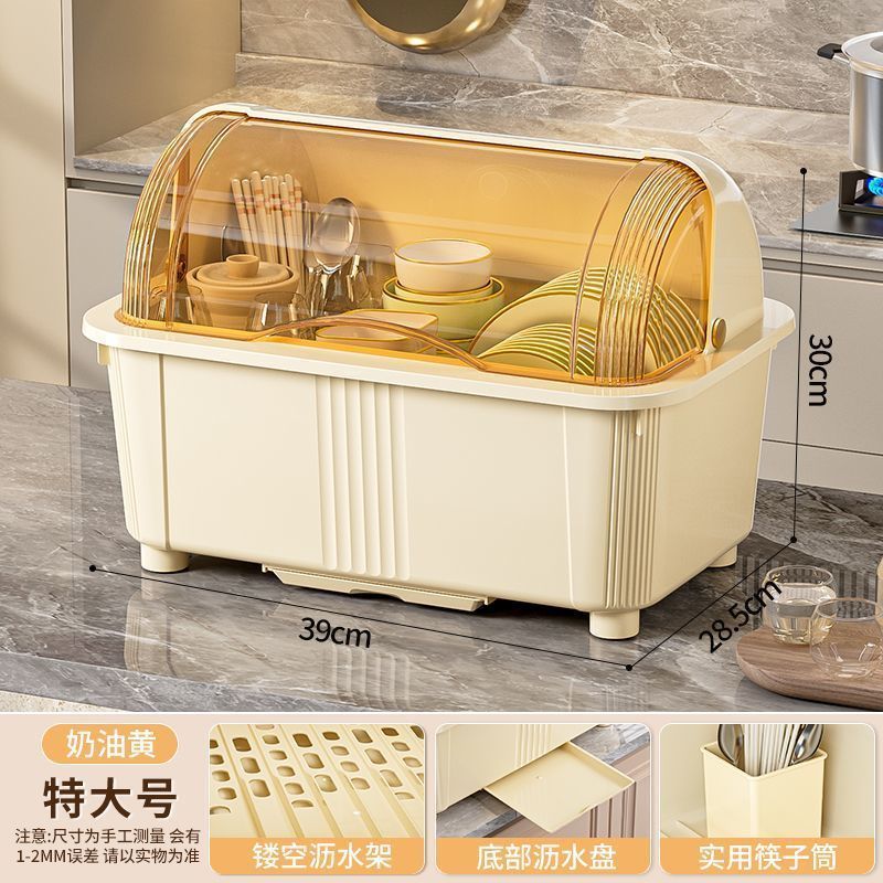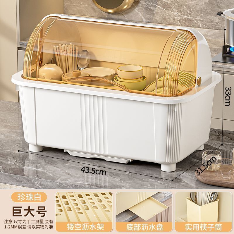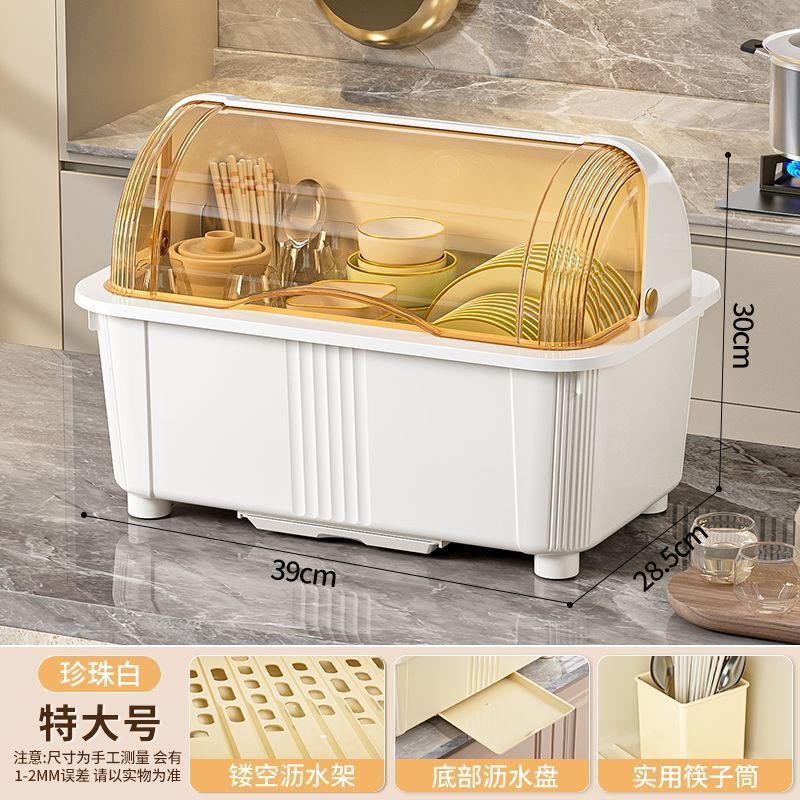 뚜껑 식기 보관 랙이있는 찬장 주방 찬장 대용량 파티션 저장 곰팡이 방지 먼지 방지 건조 배수구 랙