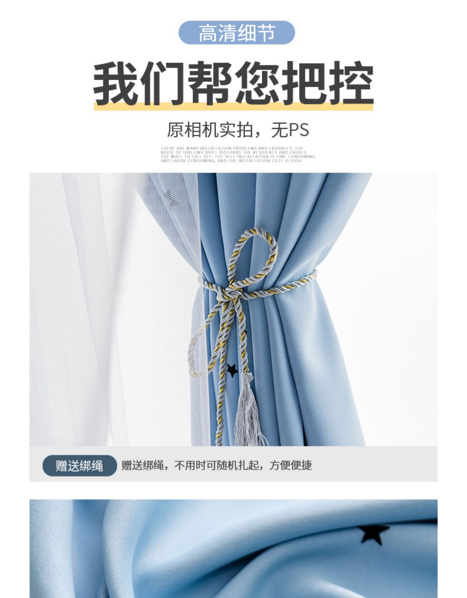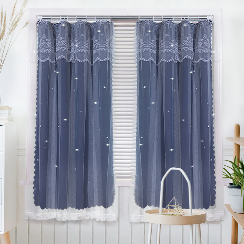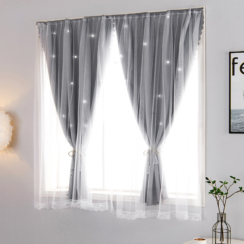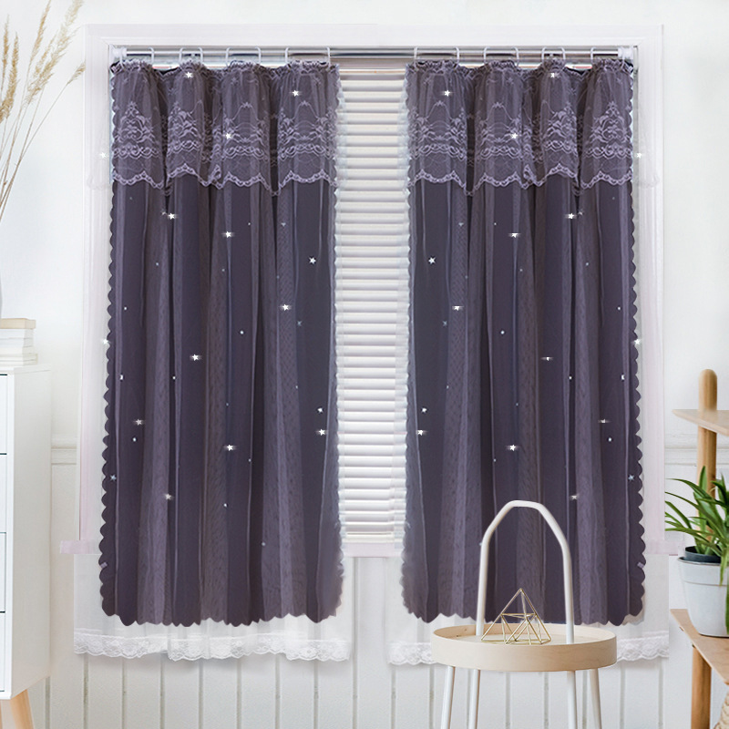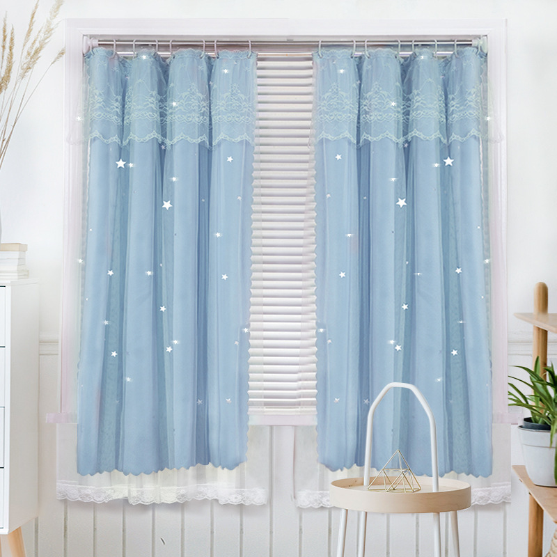 간단한 두꺼운 풀 쉐이딩 솔리드 컬러 커튼 펀치 프리 패브릭 더블 레이어 스타 북유럽 스타일 페이스트 폴리 에스테르 그늘 천스토어 가기