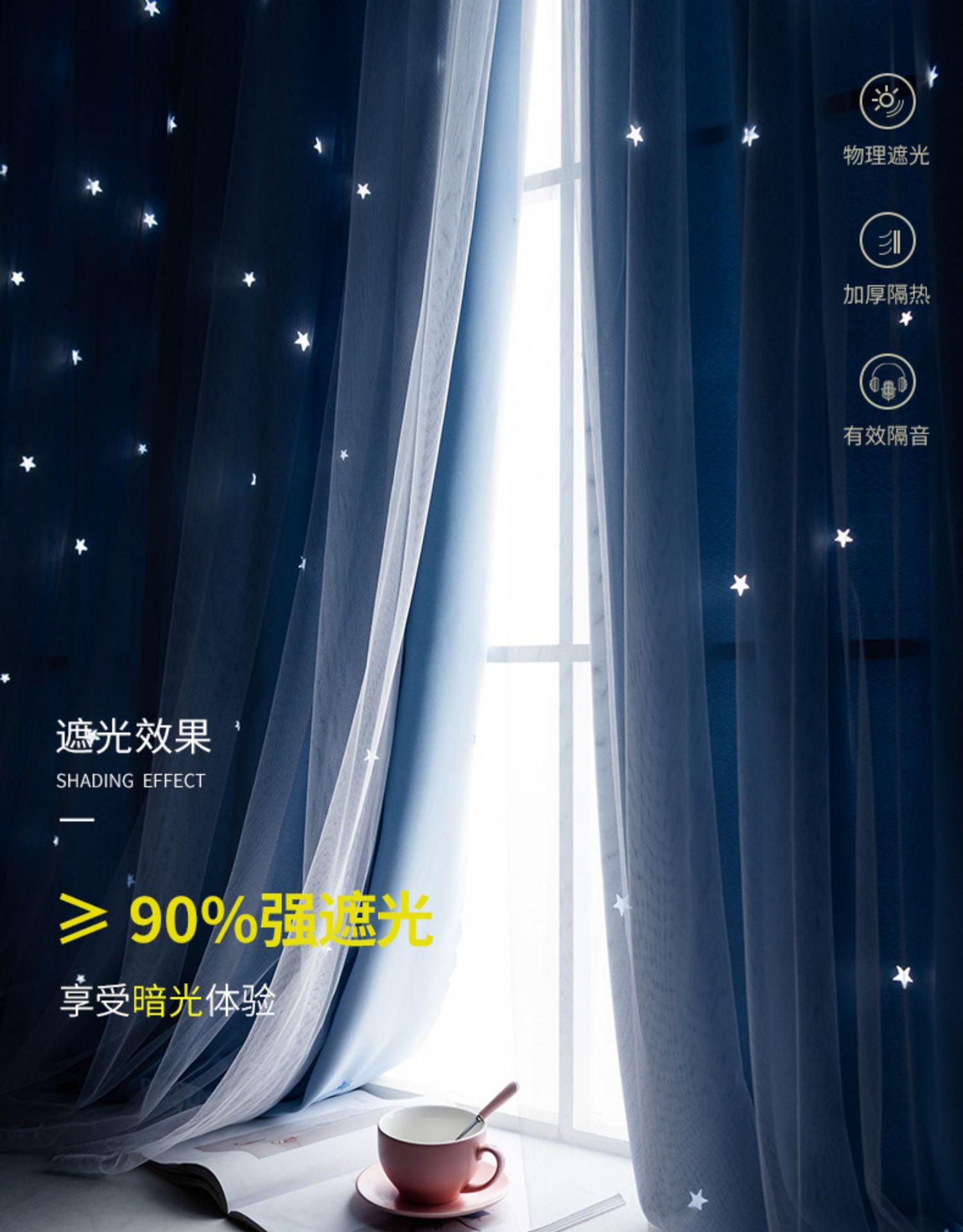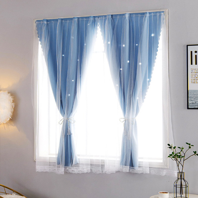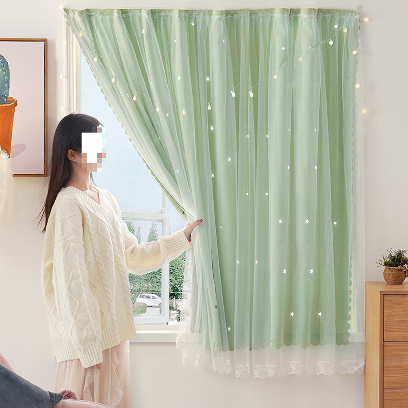 간단한 두꺼운 풀 쉐이딩 솔리드 컬러 커튼 펀치 프리 패브릭 더블 레이어 스타 북유럽 스타일 페이스트 폴리 에스테르 그늘 천
