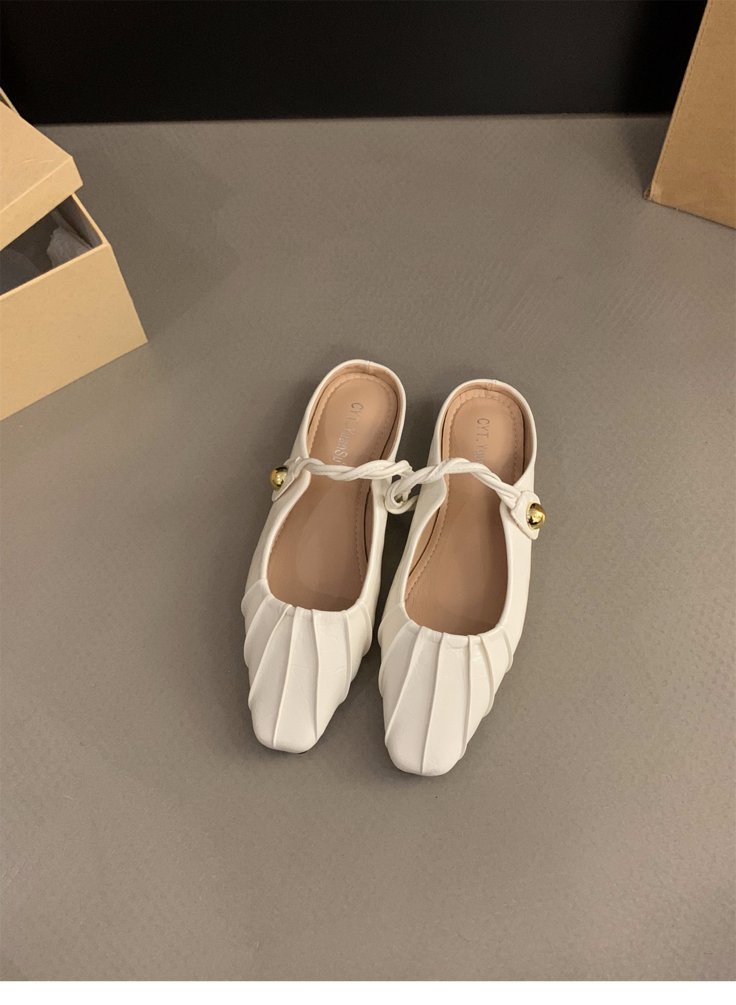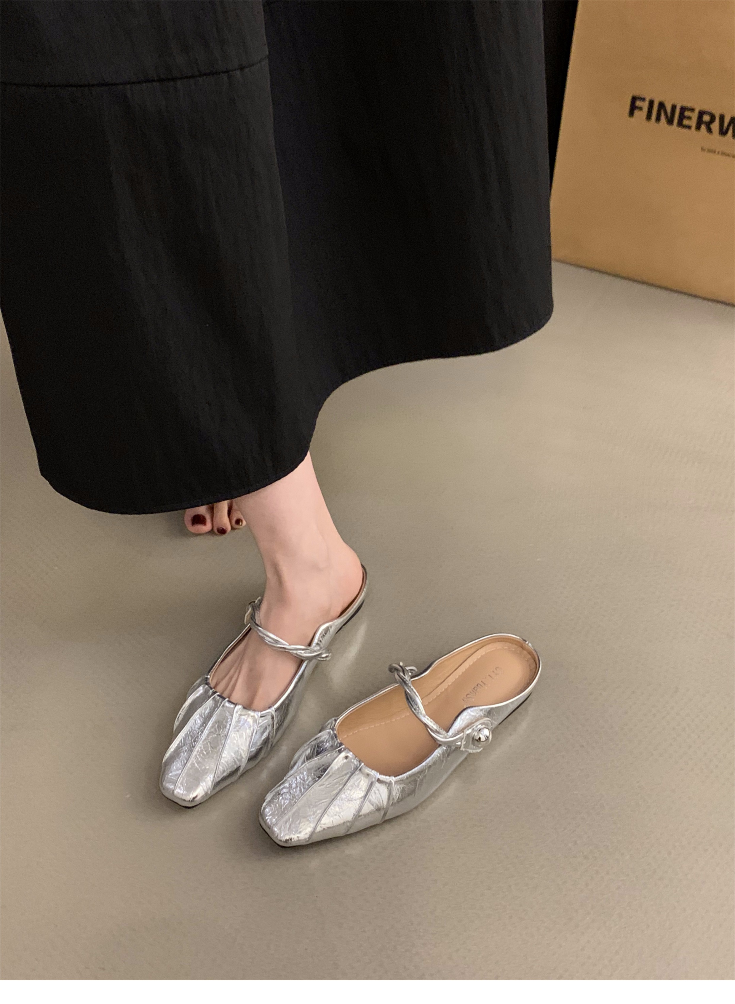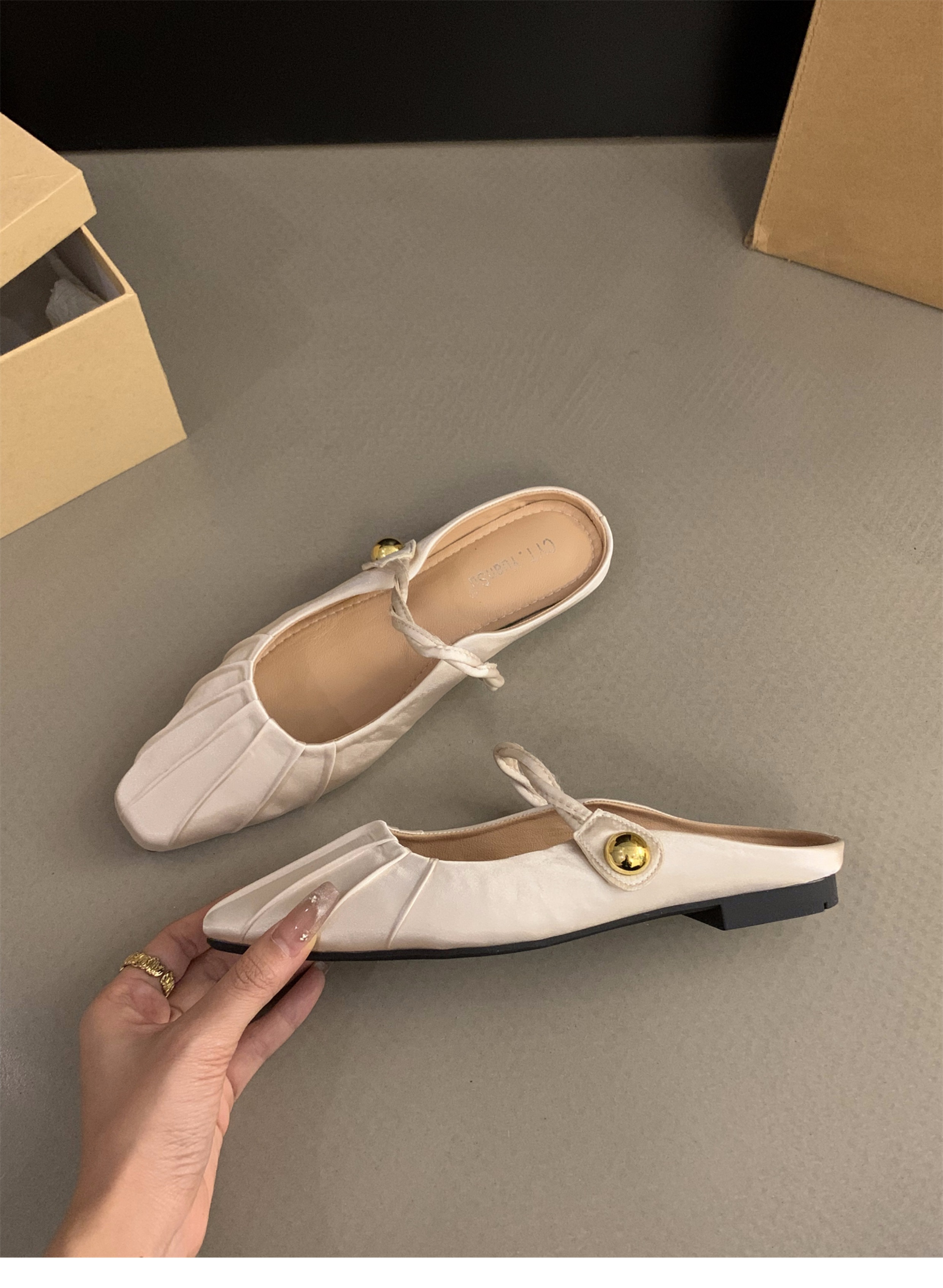 플랫 플리츠 우아한 바오터우 하프 슬리퍼 여성 신발 외부 착용 2025 여름 원피스 메리 제인 하프 슈즈