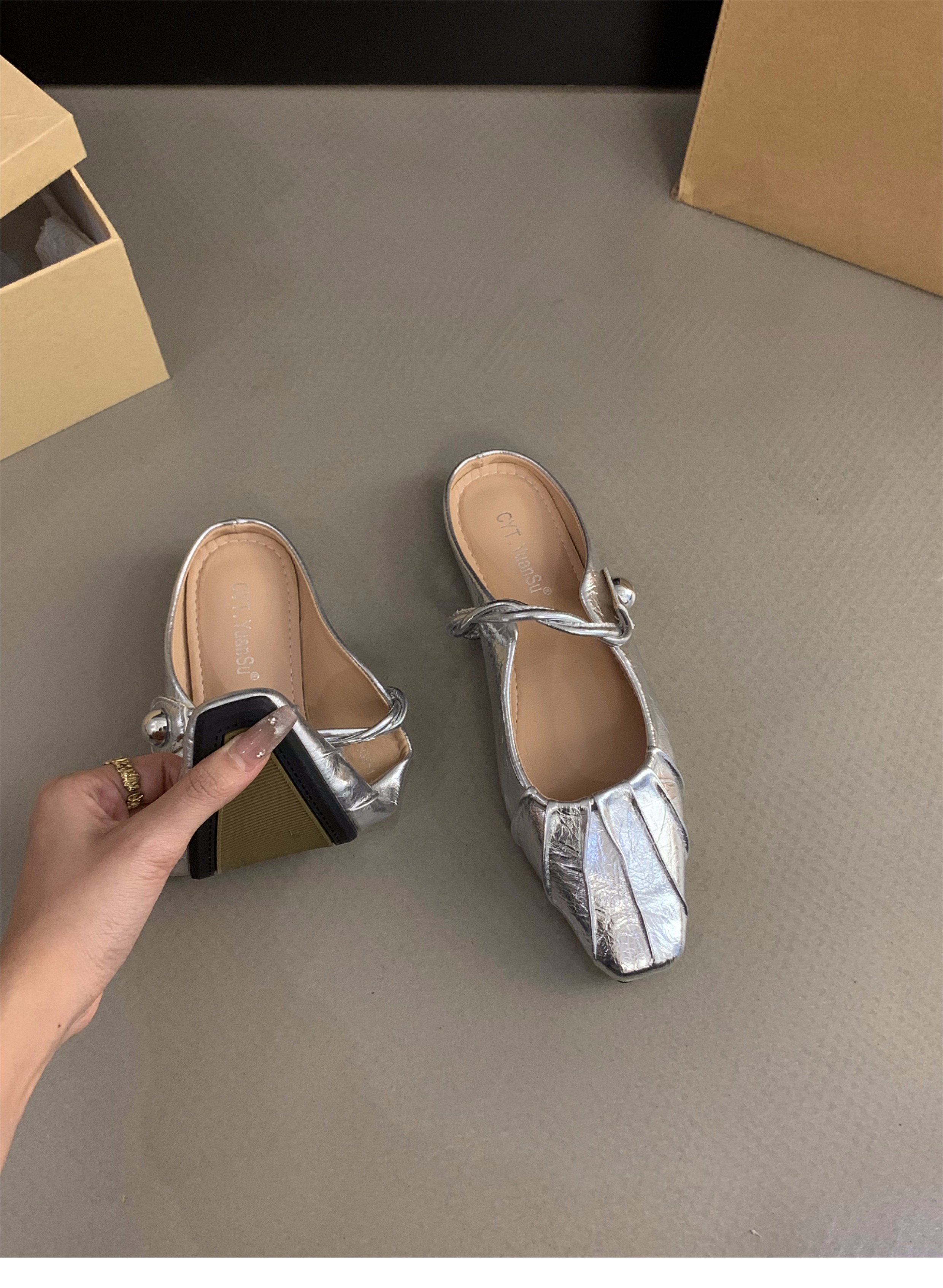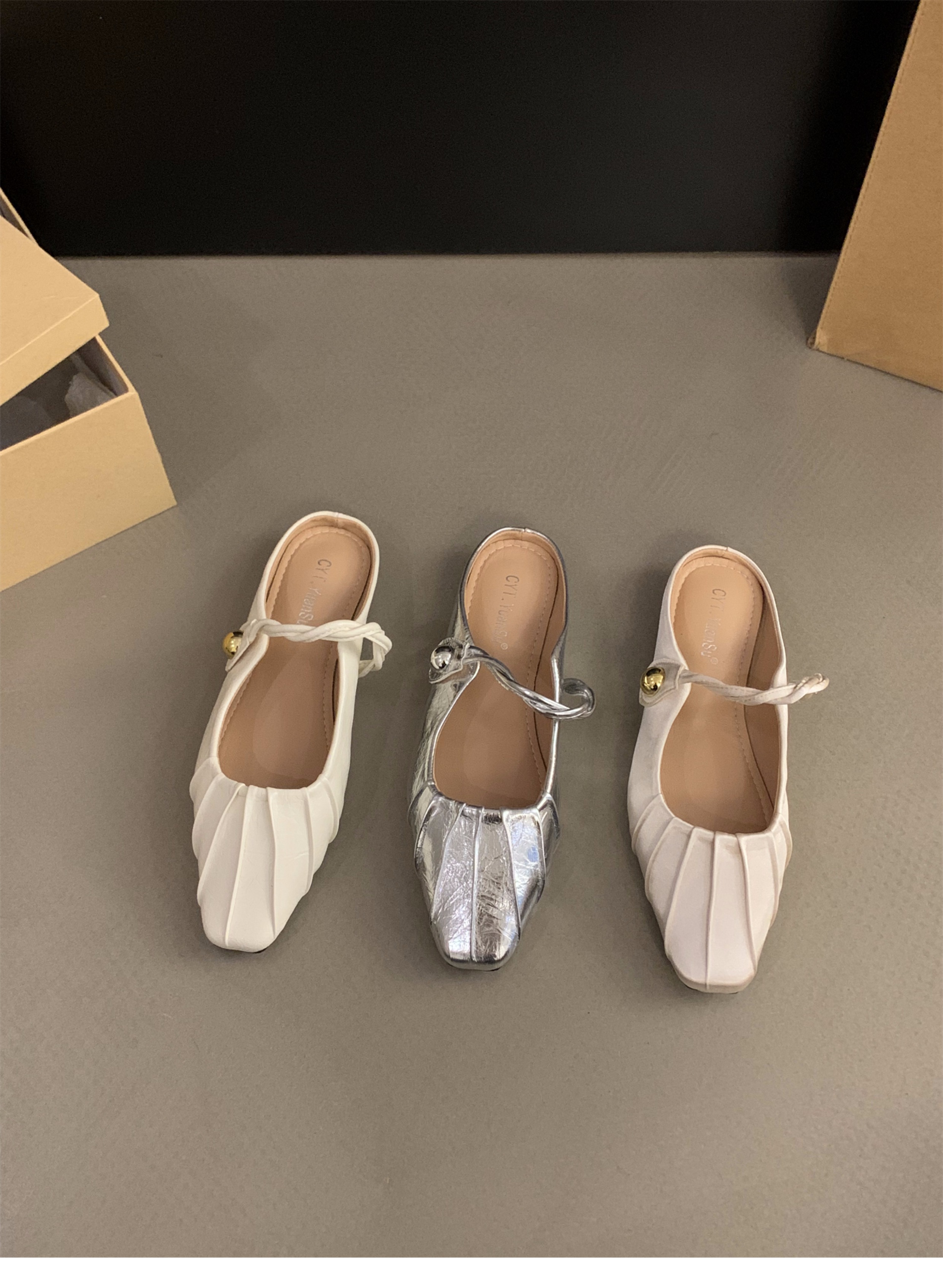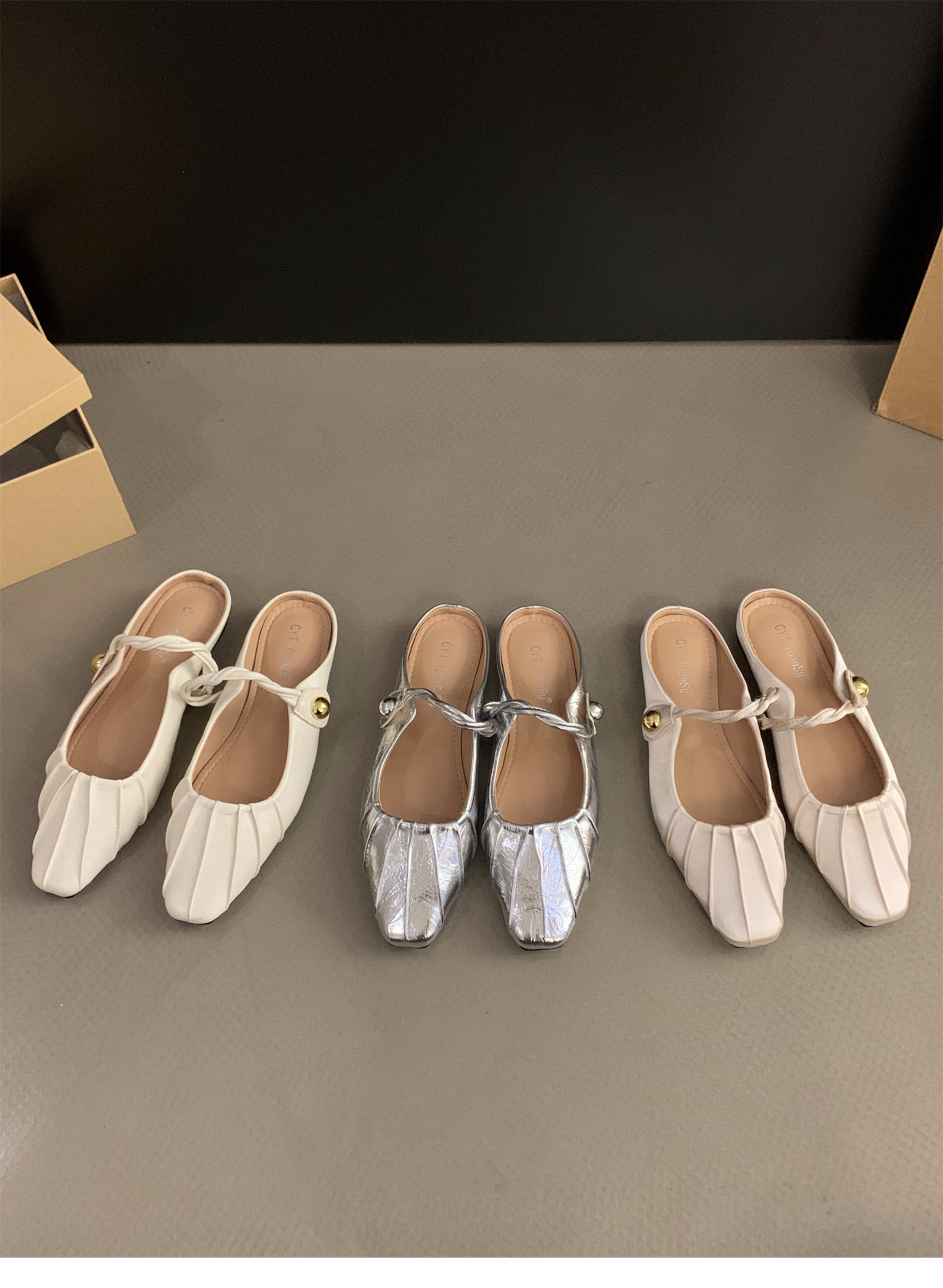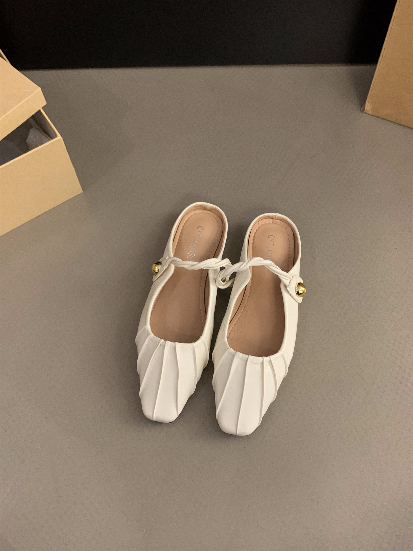 플랫 플리츠 우아한 바오터우 하프 슬리퍼 여성 신발 외부 착용 2025 여름 원피스 메리 제인 하프 슈즈