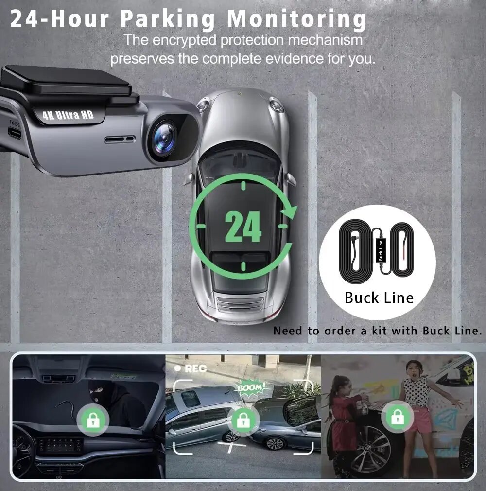 2025 새로운 캠 4K DVR 전면 및 후면 단일 채널 자동차 DVR 레코더 24h 주차 모니터링 블랙 박스