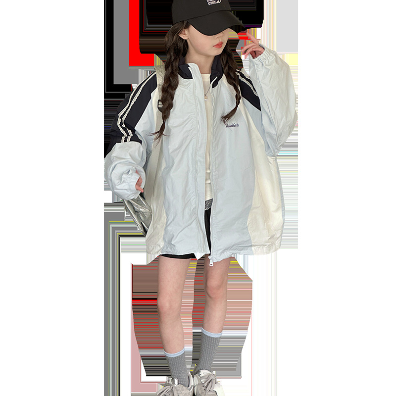 소녀 아동복 레저 코트 2025 새로운 서양식 어린이 봄 옷 윈드브레이커 소녀의 큰 소년 패션 대조 색상