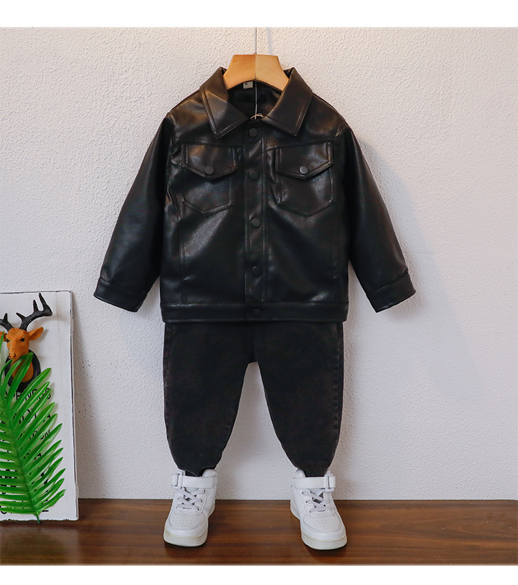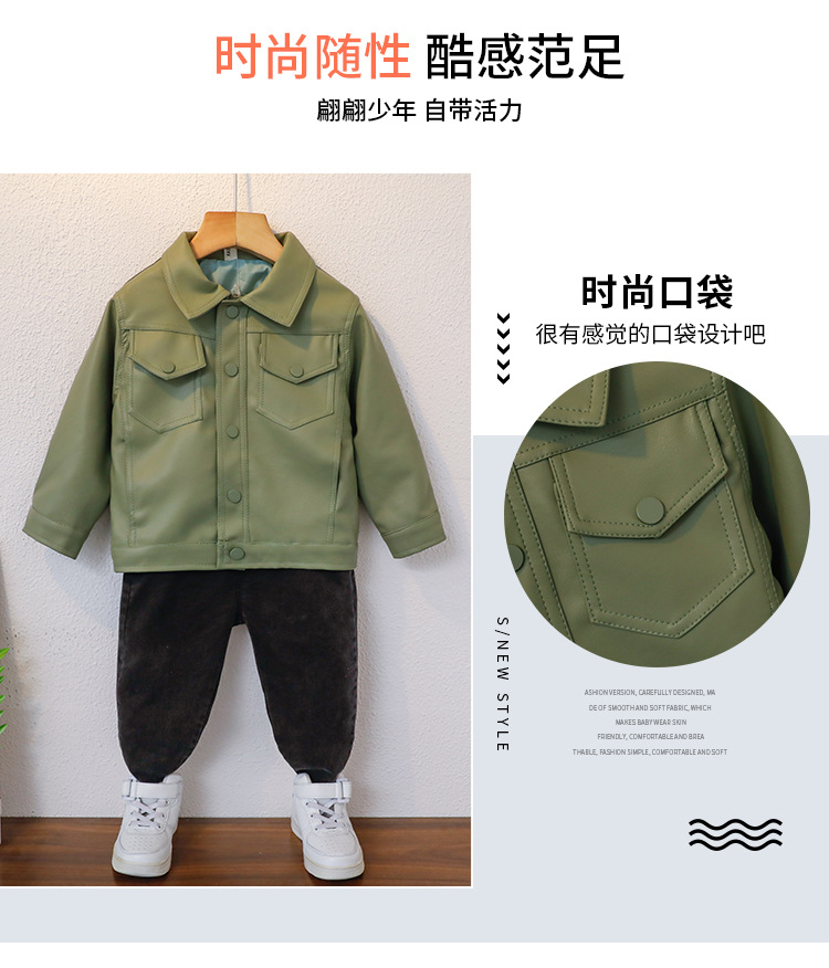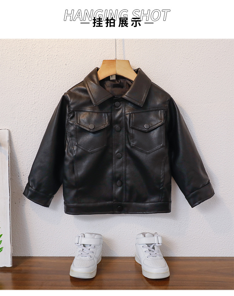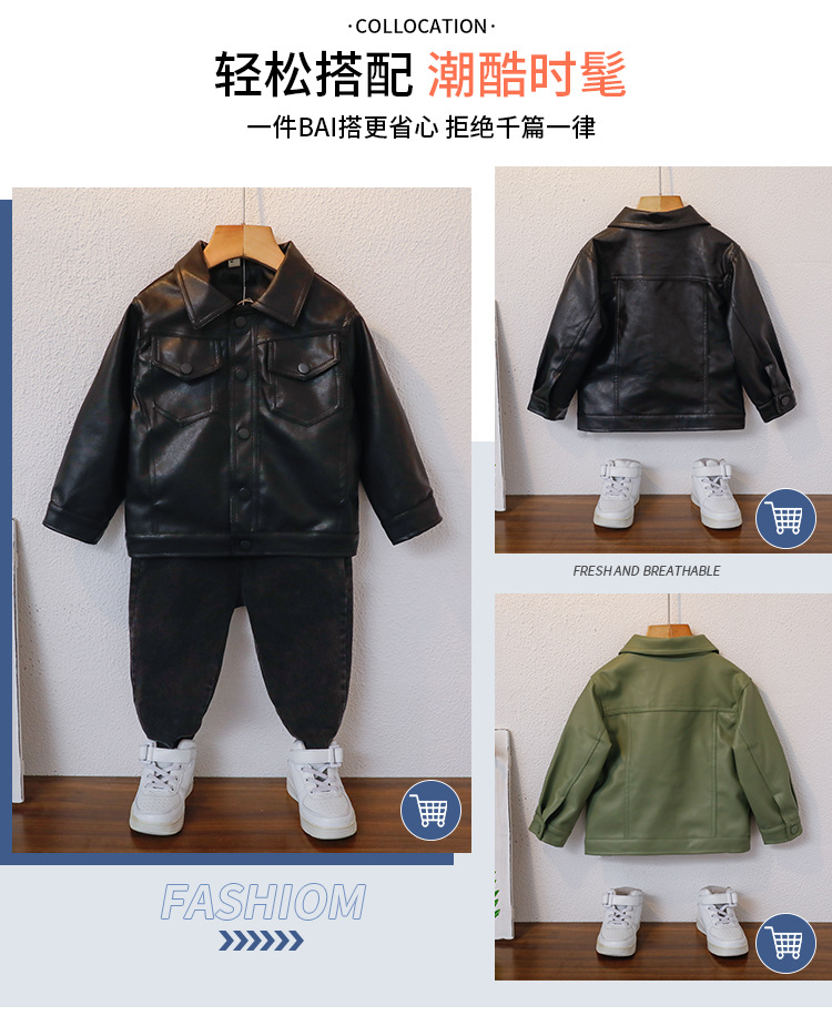2025 새로운 소년 가죽 자켓 봄과 가을 유행 어린이 pu 가죽 자켓 잘 생긴 아기 봄 옷 유행스토어 가기