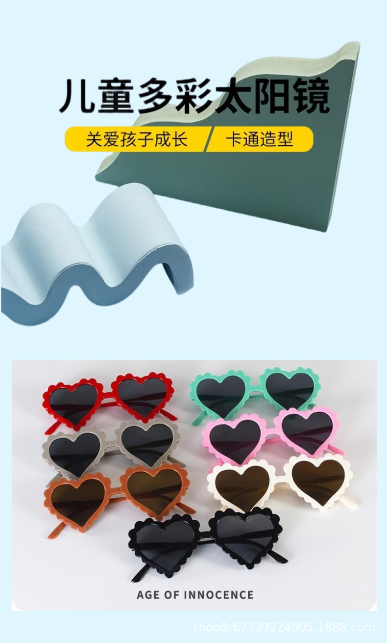 귀여운 여름 어린이 선글라스 만화 안경 심장 모양의 유행 소년과 소녀 자외선 차단 선글라스 맞춤형 어린이스토어 가기