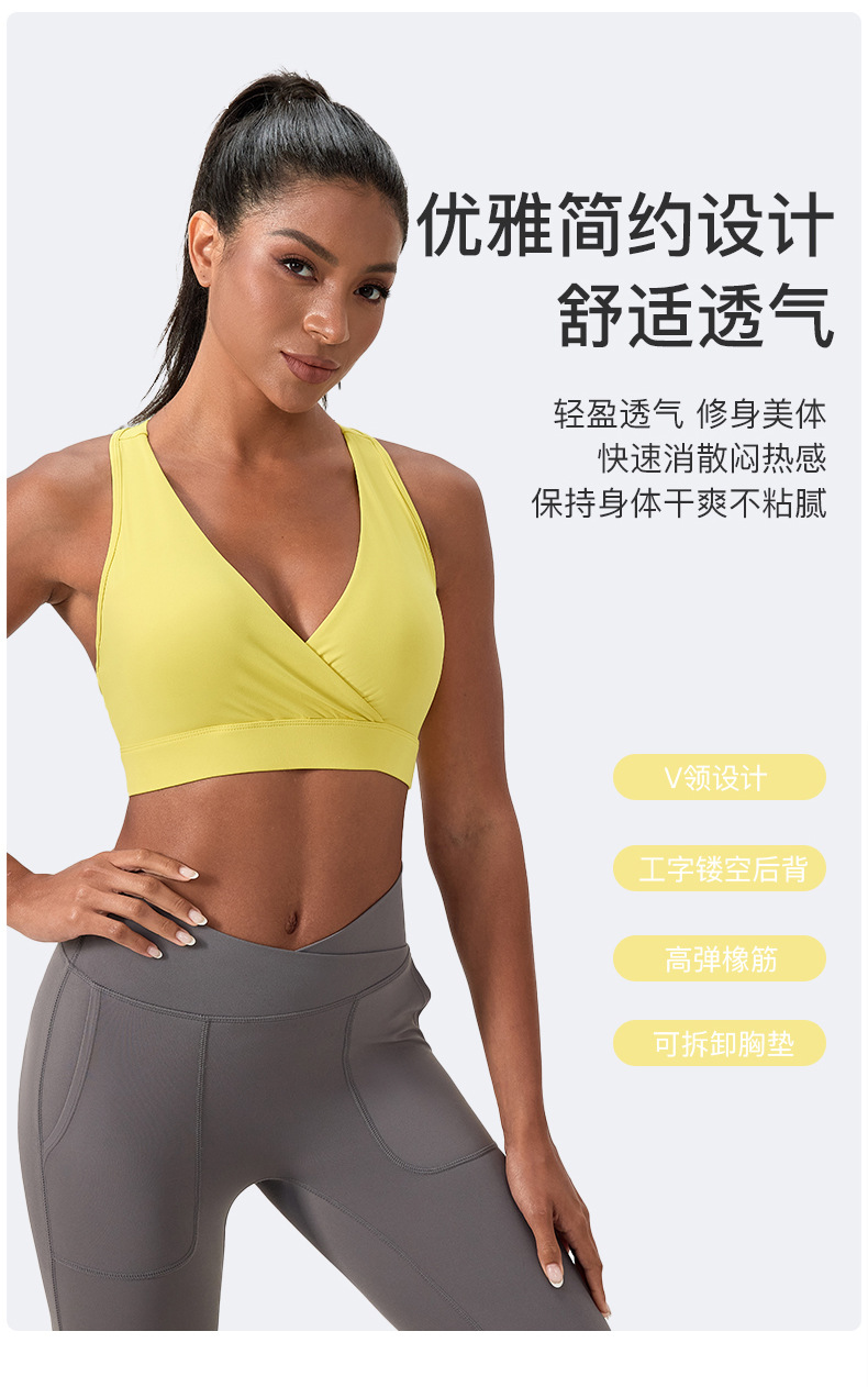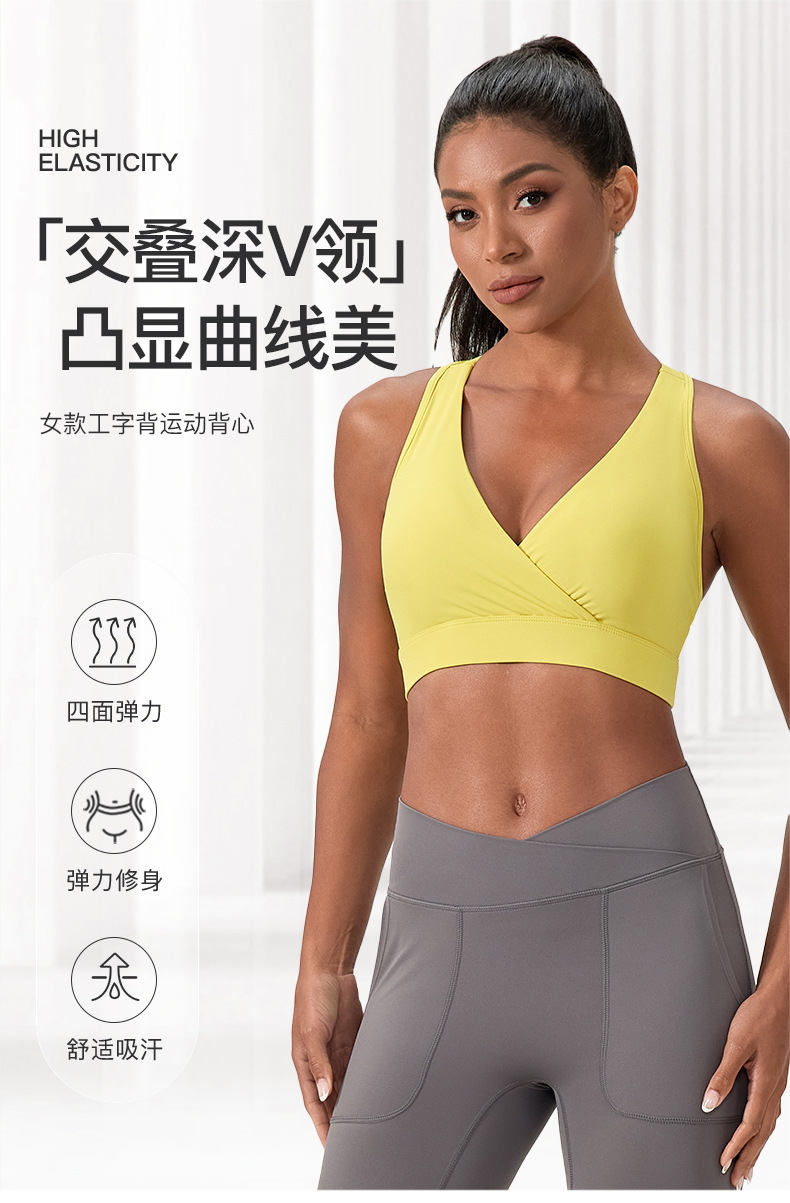 유럽과 미국의 여성 요가 의류 스포츠 속옷 벗은 깊은 V 섹시한 피트니스 브라 나일론 높은 탄성 I 자형 조끼 52763