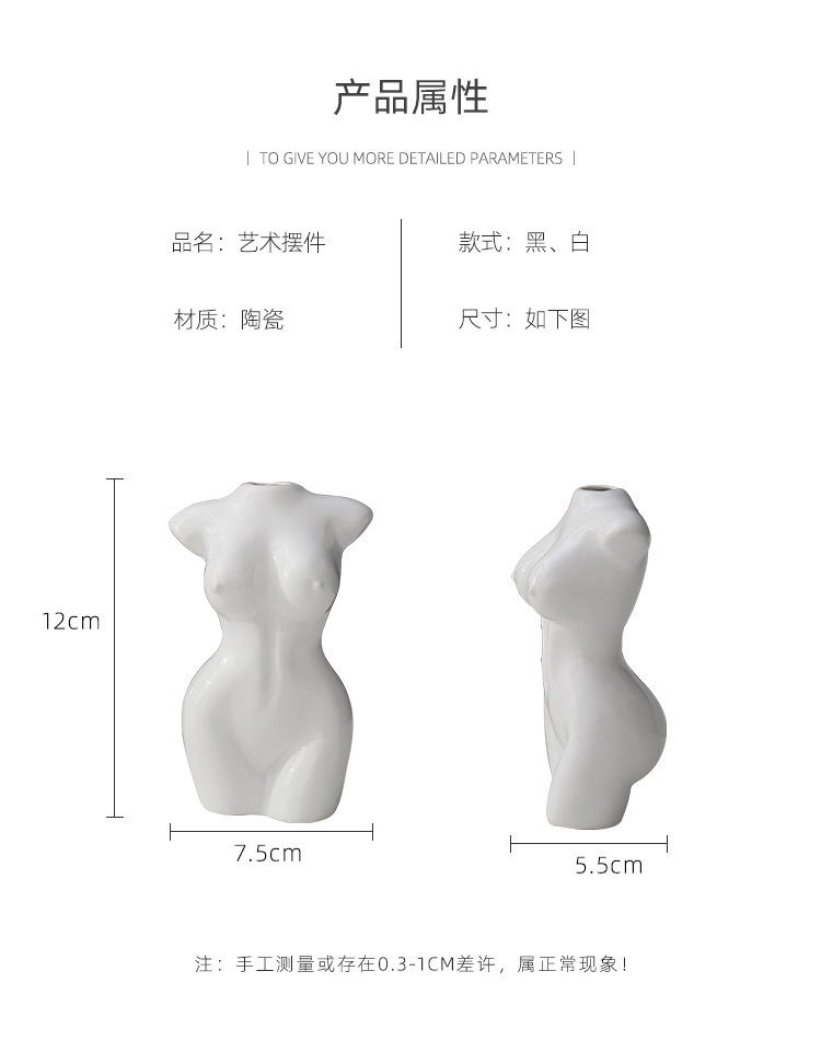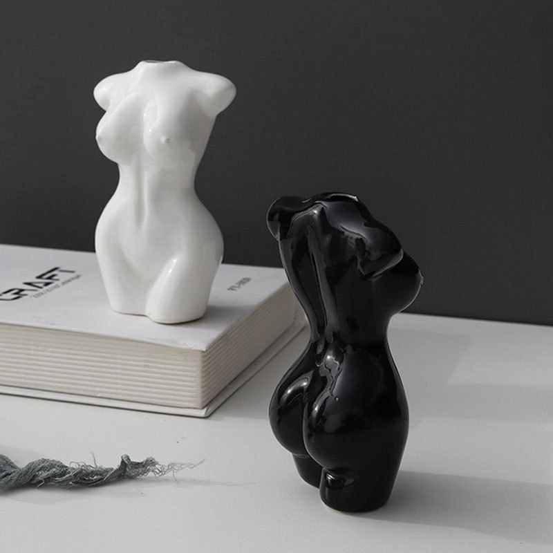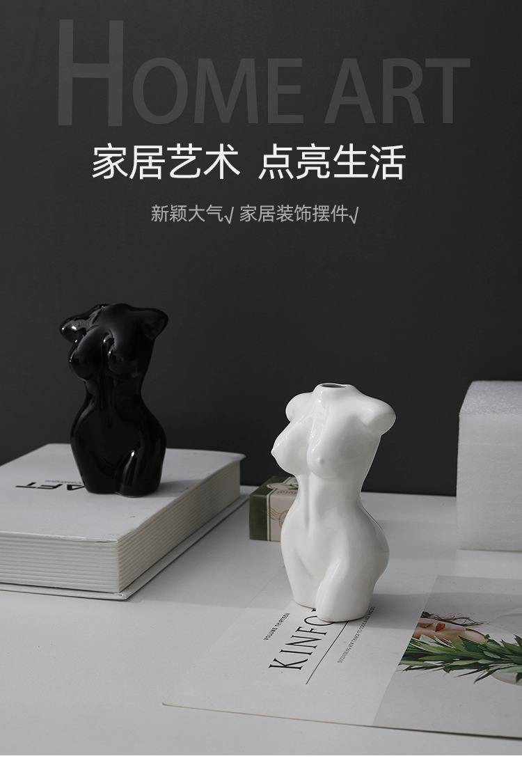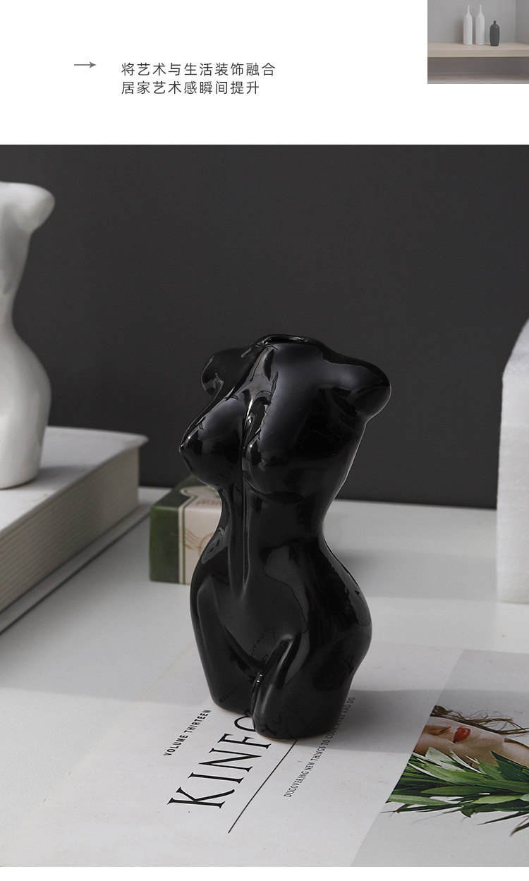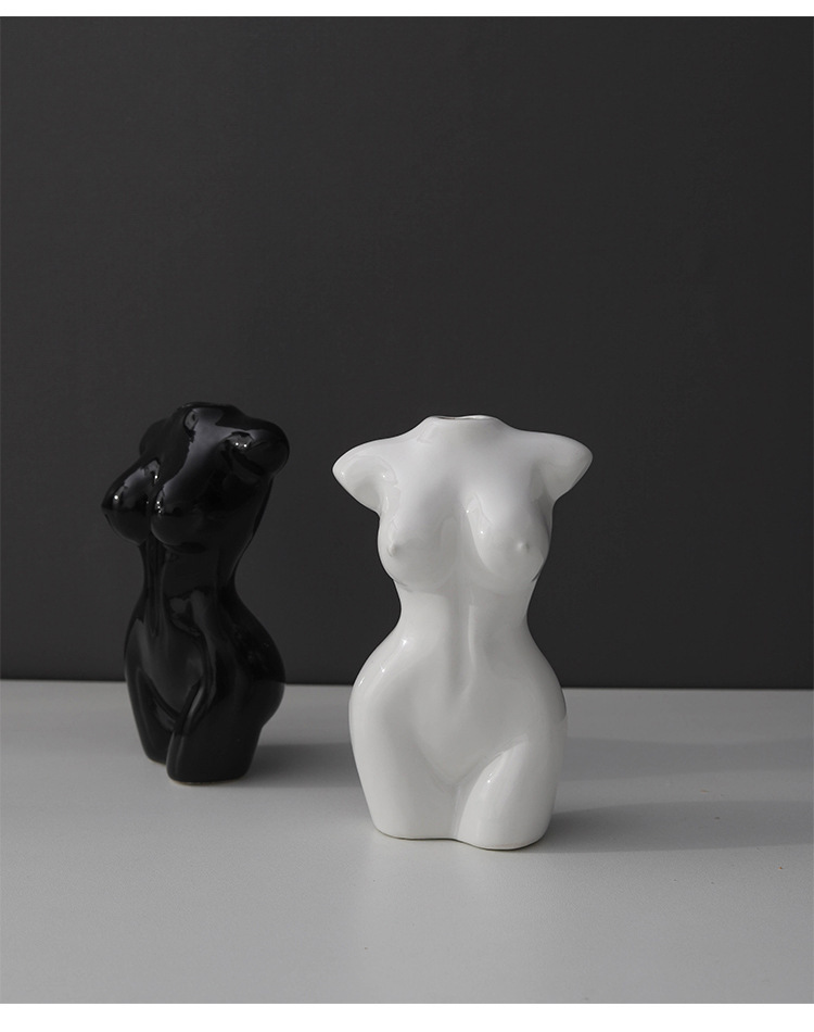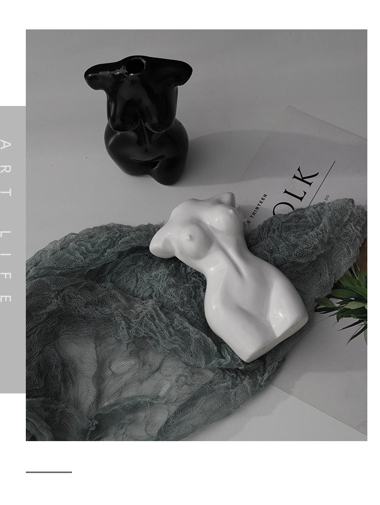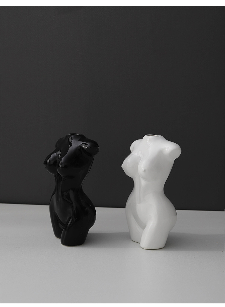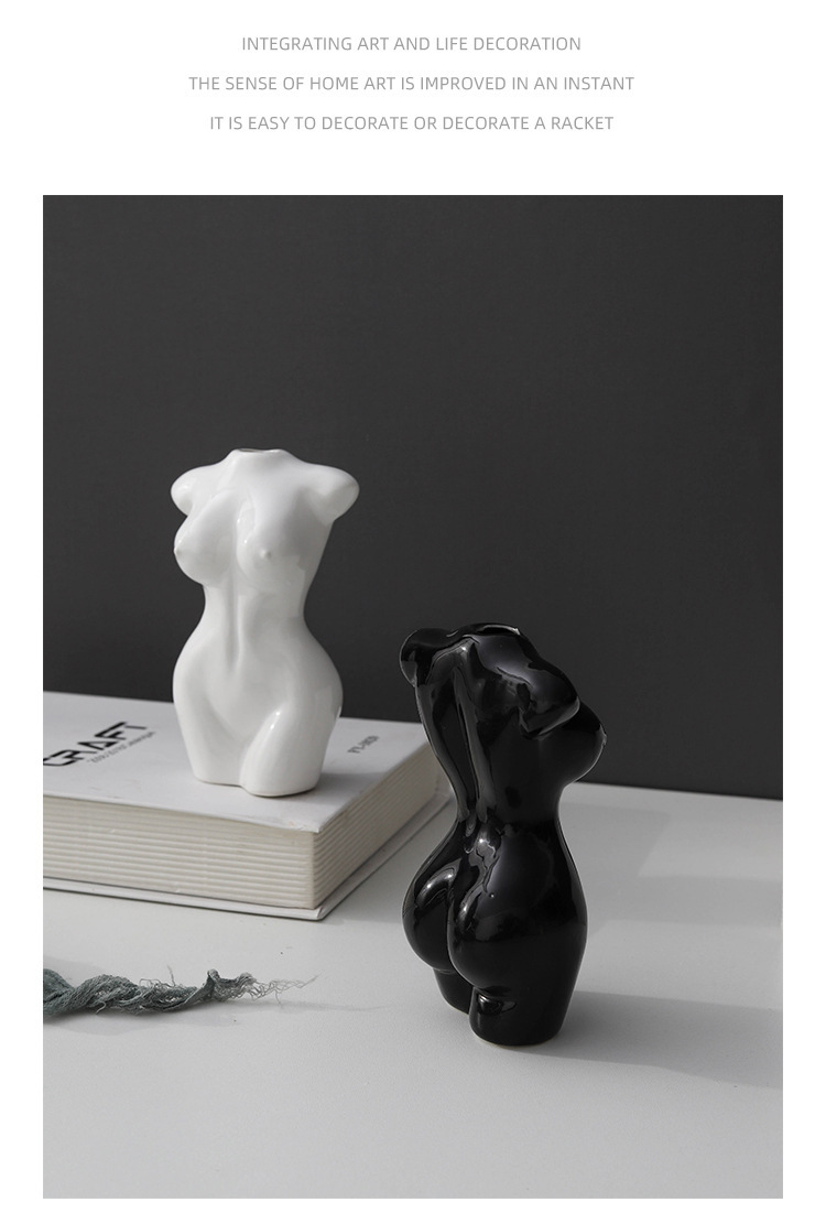 크리 에이 티브 블랙 화이트 바디 모양 세라믹 장식 작은 꽃병 맞춤형 데스크탑 작은 컨테이너 수제 욕실 장식품