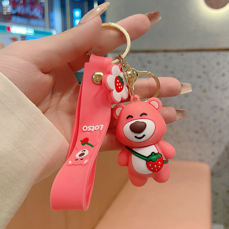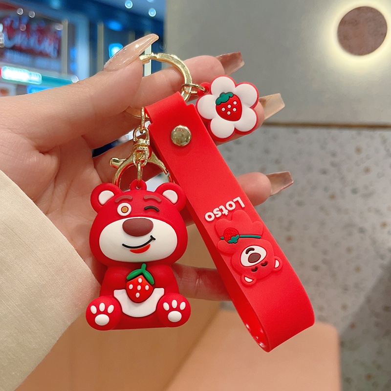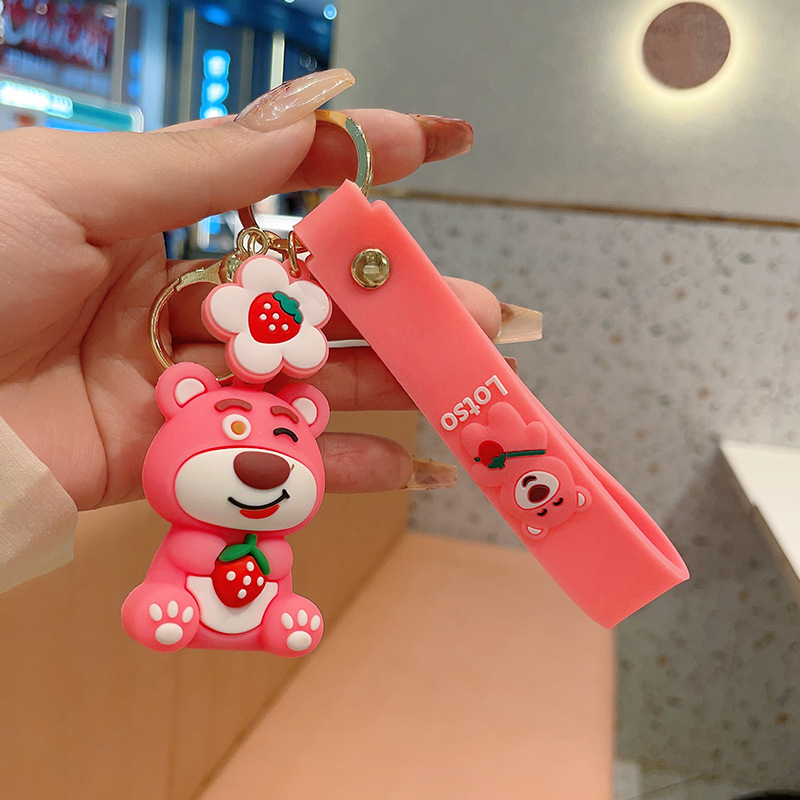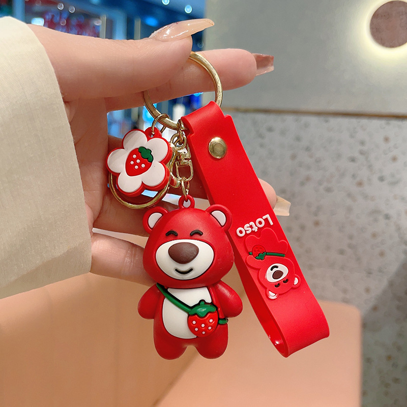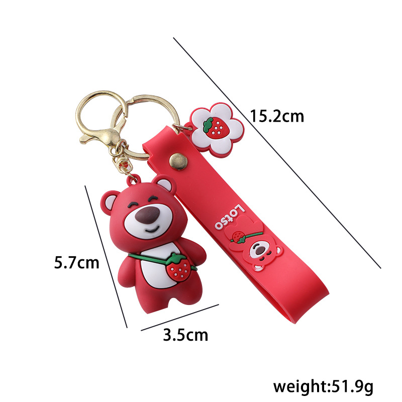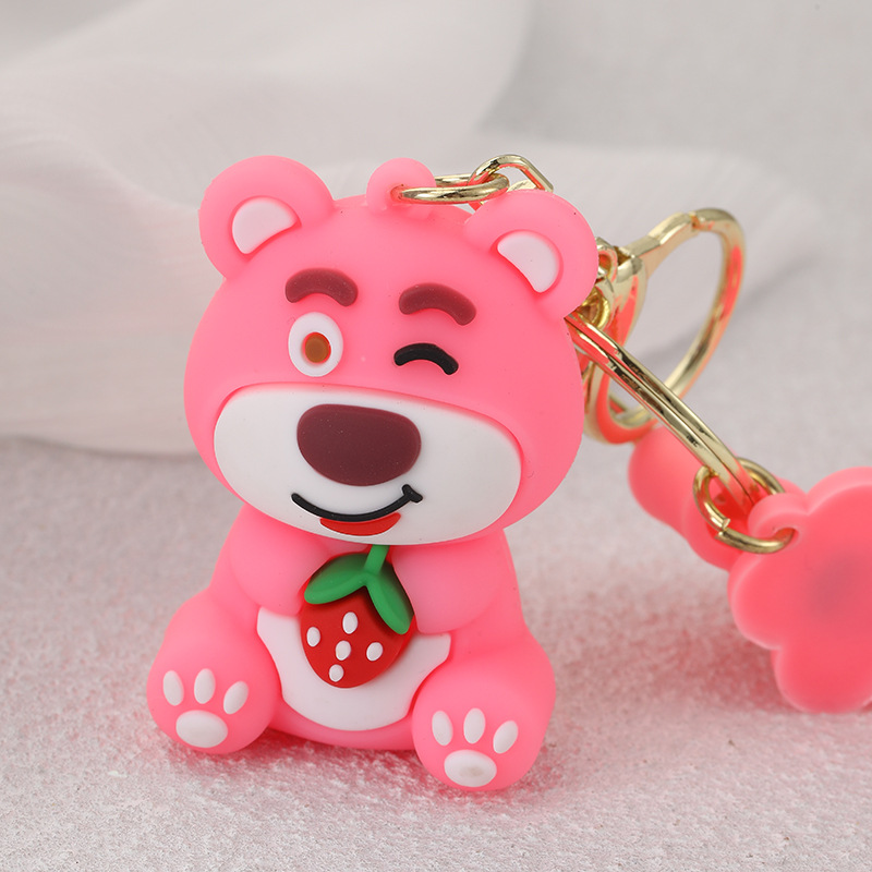 귀여운 만화 딸기 사첼 곰 드롭 접착제 인형 키 체인 펜던트 절묘한 커플 자동차 가방 키 체인